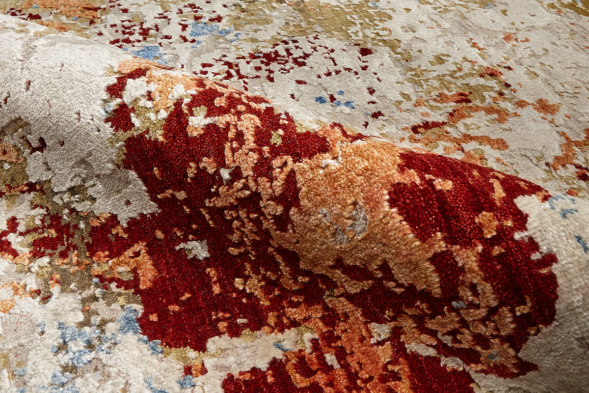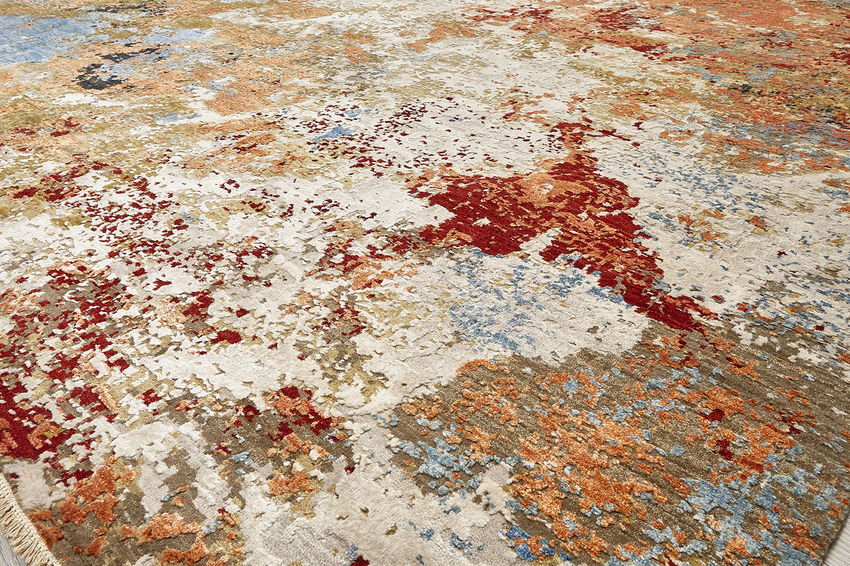 Дизайн ковров напоминает современные полотна художников-абстракционистов и производит столь же яркое и незабываемое впечатление в интерьере. Живописный эффект и необычная фактура зависят от выбора материала: натуральной шерсти, шёлка и от их сочетаний друг с другом. Ковры ткутся вручную в лучших мастерских Индии и Пакистана.