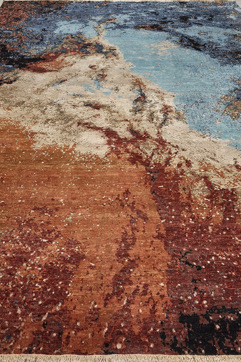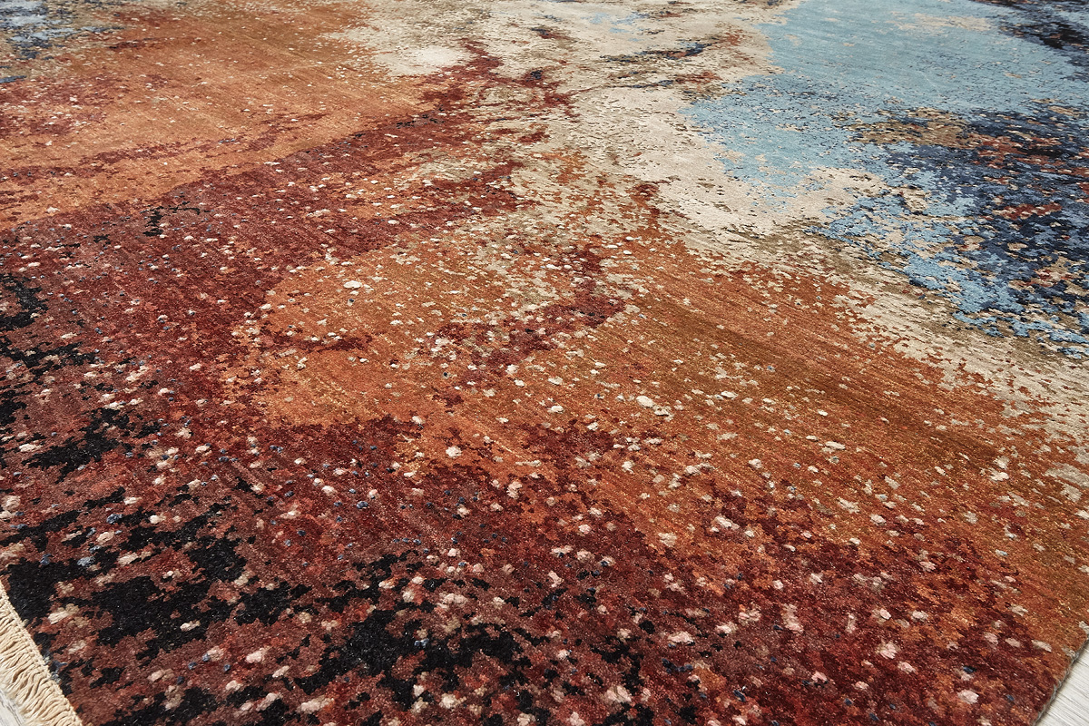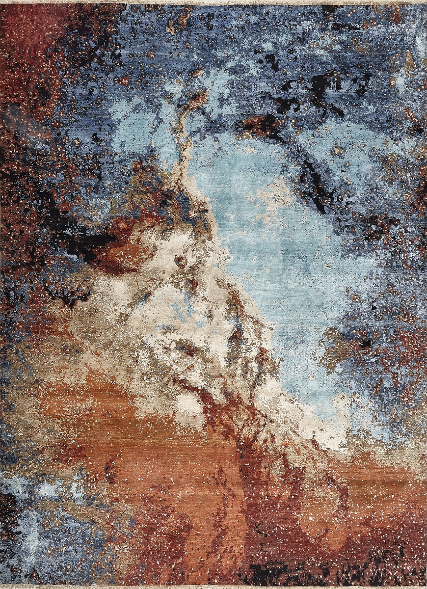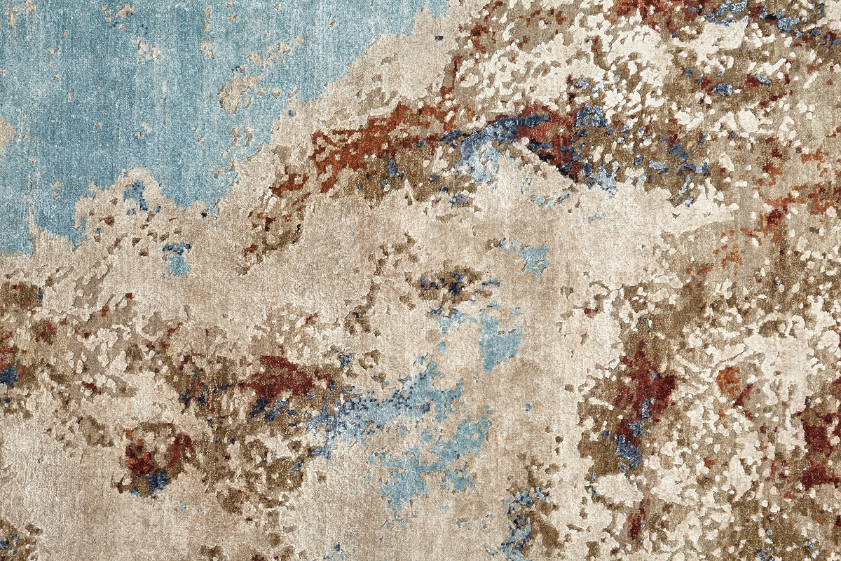 Дизайн ковров напоминает современные полотна художников-абстракционистов и производит столь же яркое и незабываемое впечатление в интерьере. Живописный эффект и необычная фактура зависят от выбора материала: натуральной шерсти, шёлка и от их сочетаний друг с другом. Ковры ткутся вручную в лучших мастерских Индии и Пакистана.
