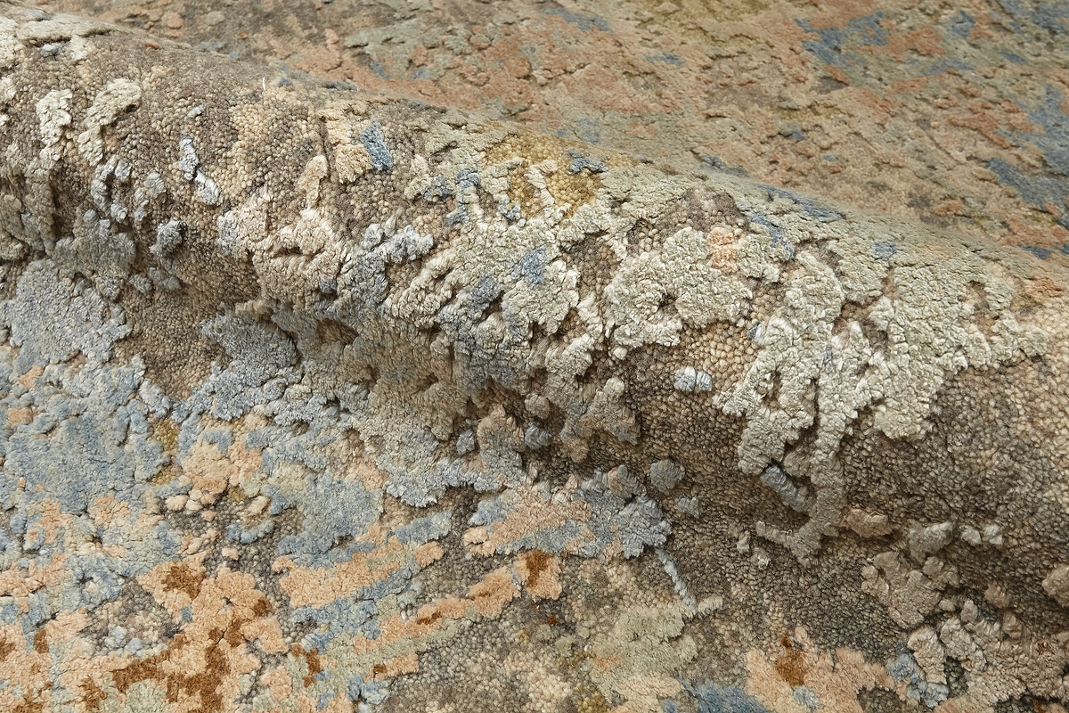 Дизайн ковров напоминает современные полотна художников-абстракционистов и производит столь же яркое и незабываемое впечатление в интерьере. Живописный эффект и необычная фактура зависят от выбора материала: натуральной шерсти, шёлка и от их сочетаний друг с другом. Ковры ткутся вручную в лучших мастерских Индии и Пакистана.