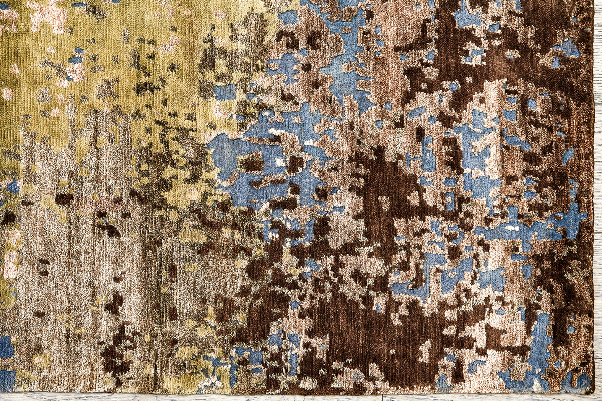 Дизайн ковров напоминает современные полотна художников-абстракционистов и производит столь же яркое и незабываемое впечатление в интерьере. Живописный эффект и необычная фактура зависят от выбора материала: натуральной шерсти, шёлка и от их сочетаний друг с другом. Ковры ткутся вручную в лучших мастерских Индии и Пакистана.