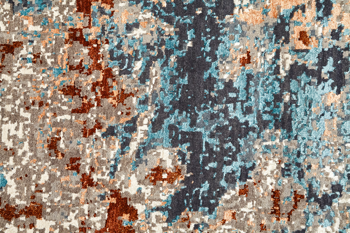 Дизайн ковров напоминает современные полотна художников-абстракционистов и производит столь же яркое и незабываемое впечатление в интерьере. Живописный эффект и необычная фактура зависят от выбора материала: натуральной шерсти, шёлка и от их сочетаний друг с другом. Ковры ткутся вручную в лучших мастерских Индии и Пакистана.