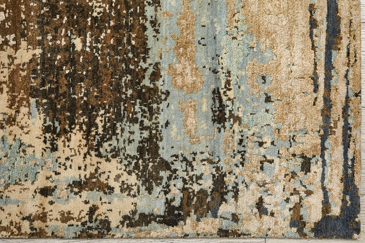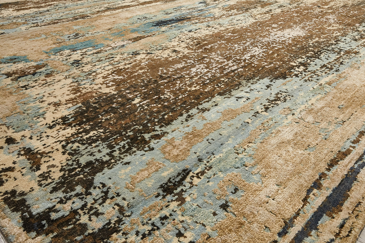 Дизайн ковров напоминает современные полотна художников-абстракционистов и производит столь же яркое и незабываемое впечатление в интерьере. Живописный эффект и необычная фактура зависят от выбора материала: натуральной шерсти, шёлка и от их сочетаний друг с другом. Ковры ткутся вручную в лучших мастерских Индии и Пакистана.