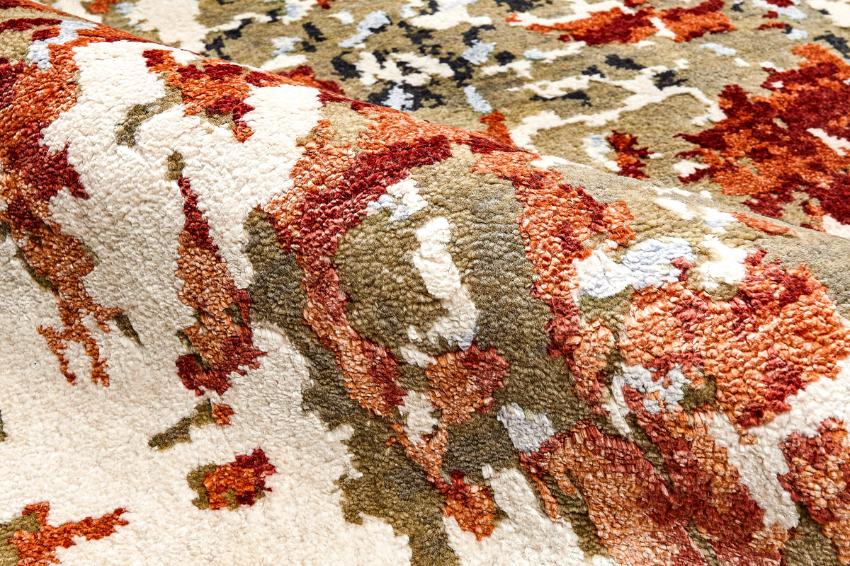 Дизайн ковров напоминает современные полотна художников-абстракционистов и производит столь же яркое и незабываемое впечатление в интерьере. Живописный эффект и необычная фактура зависят от выбора материала: натуральной шерсти, шёлка и от их сочетаний друг с другом. Ковры ткутся вручную в лучших мастерских Индии и Пакистана.