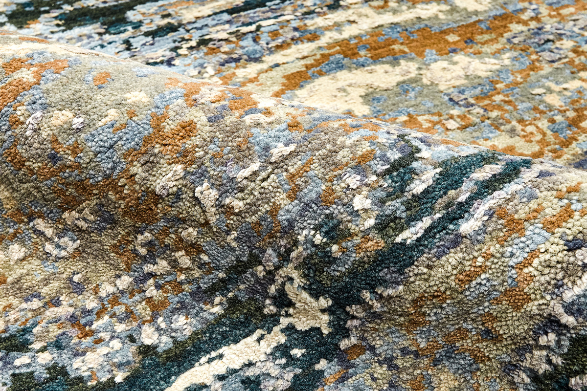 Дизайн ковров напоминает современные полотна художников-абстракционистов и производит столь же яркое и незабываемое впечатление в интерьере. Живописный эффект и необычная фактура зависят от выбора материала: натуральной шерсти, шёлка и от их сочетаний друг с другом. Ковры ткутся вручную в лучших мастерских Индии и Пакистана.