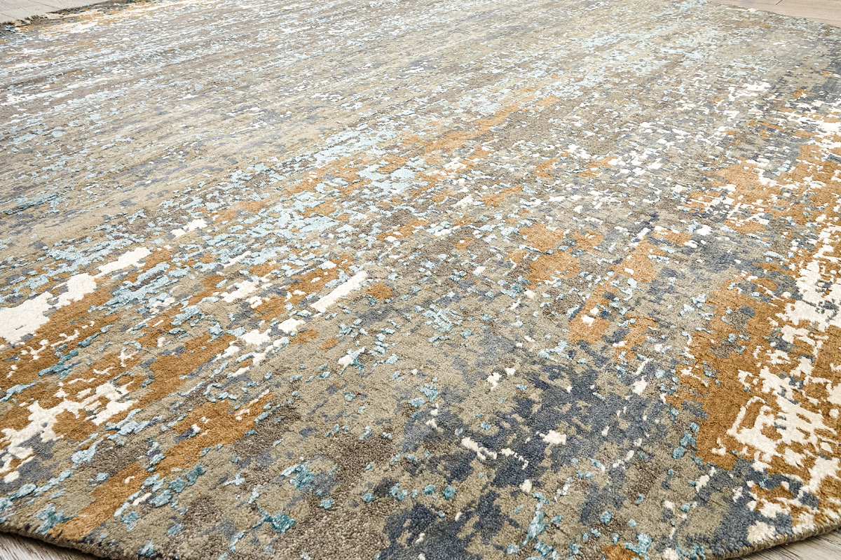 Дизайн ковров напоминает современные полотна художников-абстракционистов и производит столь же яркое и незабываемое впечатление в интерьере. Живописный эффект и необычная фактура зависят от выбора материала: натуральной шерсти, шёлка и от их сочетаний друг с другом. Ковры ткутся вручную в лучших мастерских Индии и Пакистана.