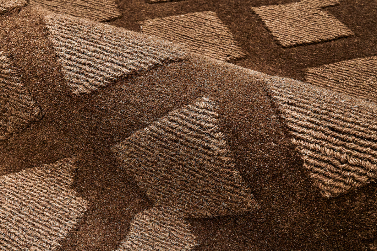 Крупные рисунки в виде линий и фигур на фактурной поверхности ковра превращаются в выразительные композиции. Они акцентируют на себе внимание и добавляют динамики в современный интерьер. Комбинации разных фигур и повторяющийся орнамент задают ритмическую основу пространству, привносят в него оригинальные оптические иллюзии.
