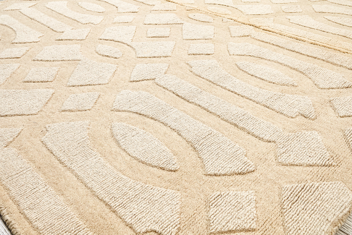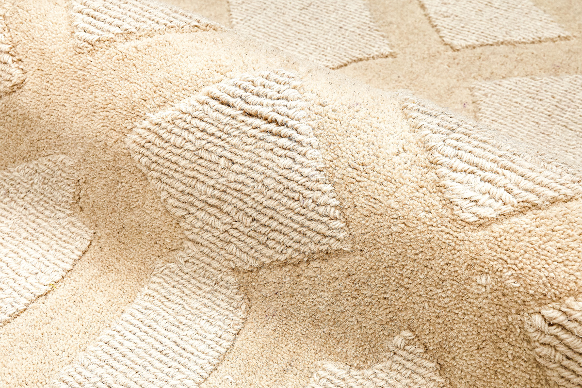 Крупные рисунки в виде линий и фигур на фактурной поверхности ковра превращаются в выразительные композиции. Они акцентируют на себе внимание и добавляют динамики в современный интерьер. Комбинации разных фигур и повторяющийся орнамент задают ритмическую основу пространству, привносят в него оригинальные оптические иллюзии.