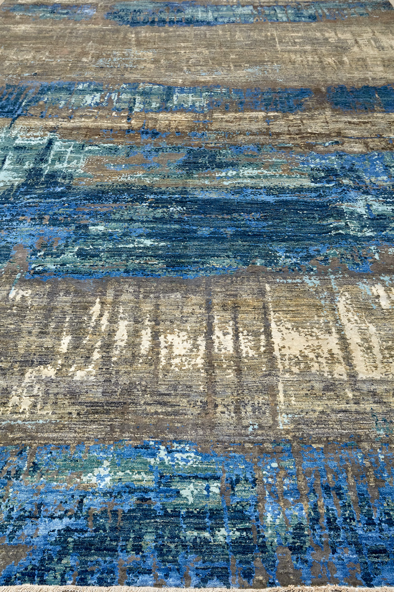 Дизайн ковров напоминает современные полотна художников-абстракционистов и производит столь же яркое и незабываемое впечатление в интерьере. Живописный эффект и необычная фактура зависят от выбора материала: натуральной шерсти, шёлка и от их сочетаний друг с другом. Ковры ткутся вручную в лучших мастерских Индии и Пакистана.
