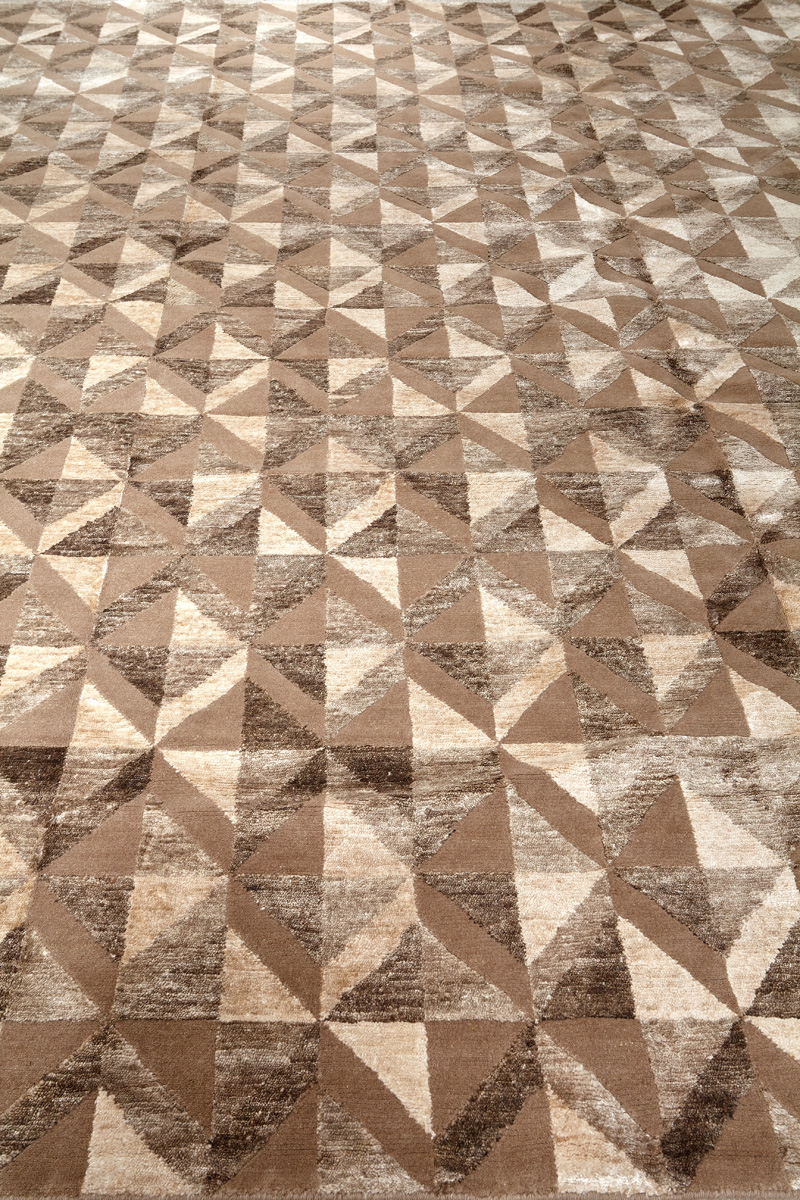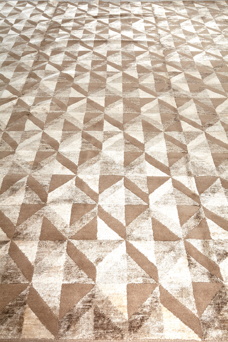 Крупные рисунки в виде линий и фигур на фактурной поверхности ковра превращаются в выразительные композиции. Они акцентируют на себе внимание и добавляют динамики в современный интерьер. Комбинации разных фигур и повторяющийся орнамент задают ритмическую основу пространству, привносят в него оригинальные оптические иллюзии.