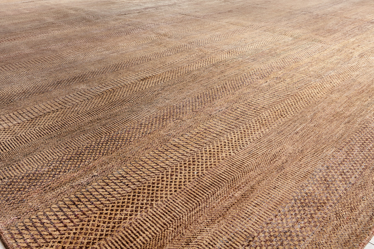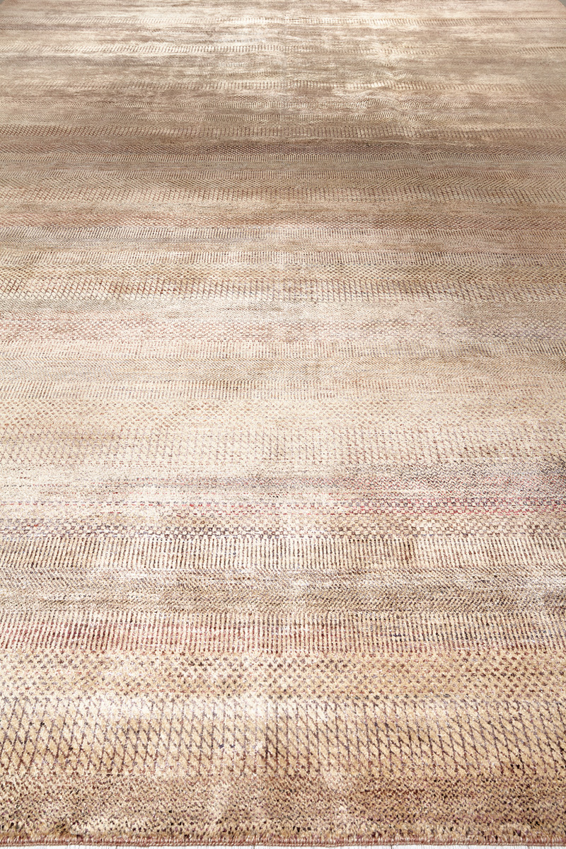 Дизайн ковров напоминает современные полотна художников-абстракционистов и производит столь же яркое и незабываемое впечатление в интерьере. Живописный эффект и необычная фактура зависят от выбора материала: натуральной шерсти, шёлка и от их сочетаний друг с другом. Ковры ткутся вручную в лучших мастерских Индии и Пакистана.