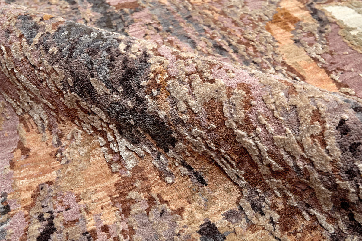 Дизайн ковров напоминает современные полотна художников-абстракционистов и производит столь же яркое и незабываемое впечатление в интерьере. Живописный эффект и необычная фактура зависят от выбора материала: натуральной шерсти, шёлка и от их сочетаний друг с другом. Ковры ткутся вручную в лучших мастерских Индии и Пакистана.