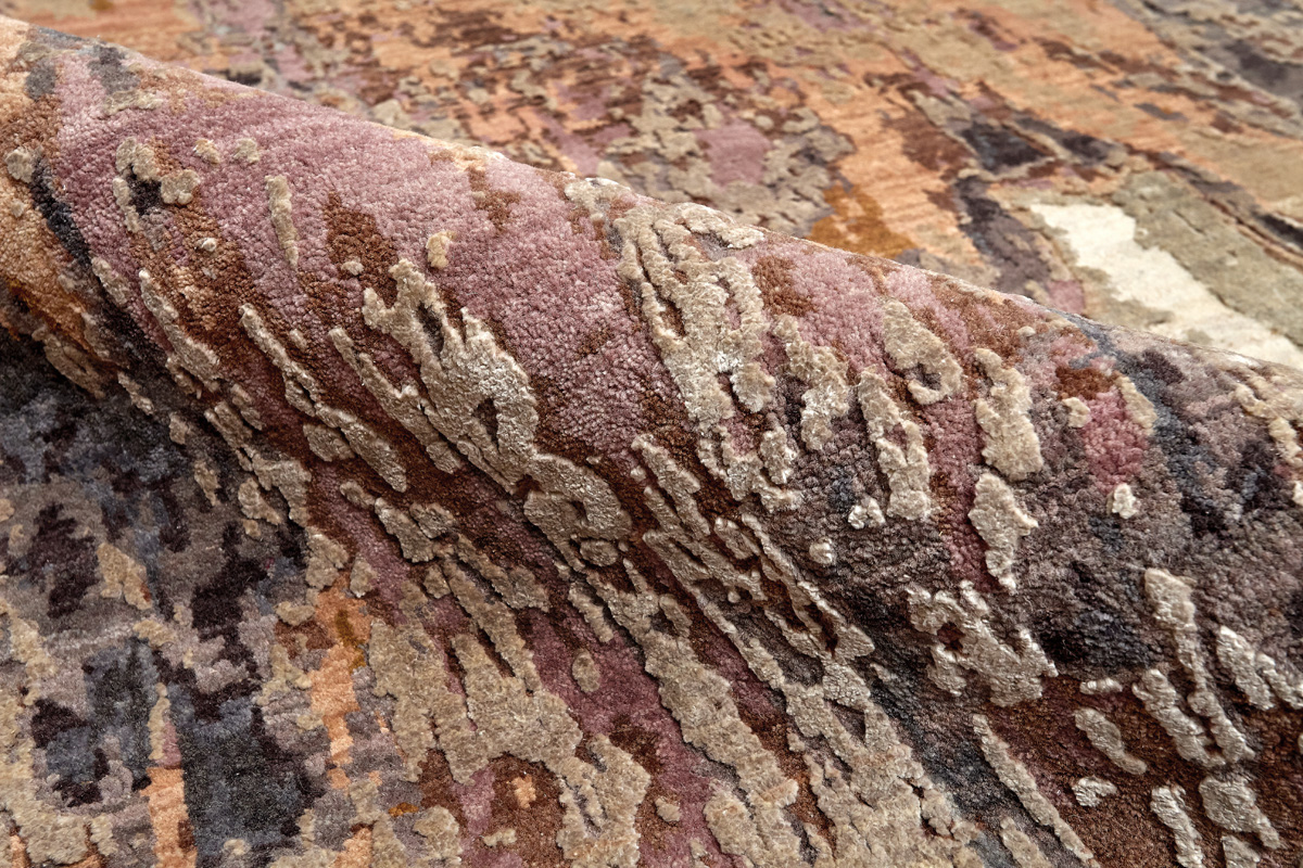 Дизайн ковров напоминает современные полотна художников-абстракционистов и производит столь же яркое и незабываемое впечатление в интерьере. Живописный эффект и необычная фактура зависят от выбора материала: натуральной шерсти, шёлка и от их сочетаний друг с другом. Ковры ткутся вручную в лучших мастерских Индии и Пакистана.