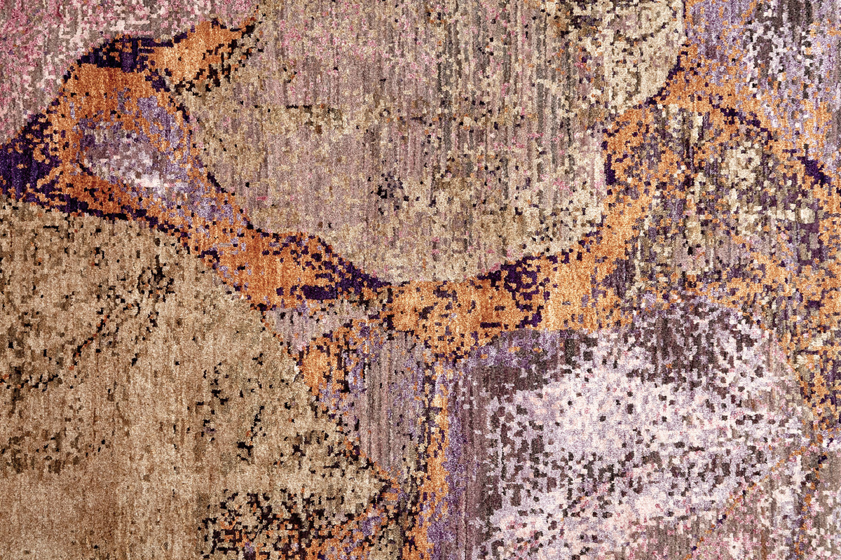 Дизайн ковров напоминает современные полотна художников-абстракционистов и производит столь же яркое и незабываемое впечатление в интерьере. Живописный эффект и необычная фактура зависят от выбора материала: натуральной шерсти, шёлка и от их сочетаний друг с другом. Ковры ткутся вручную в лучших мастерских Индии и Пакистана.