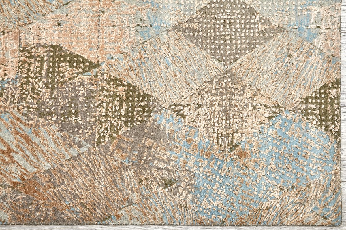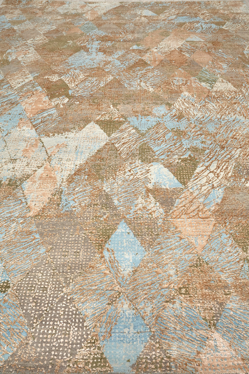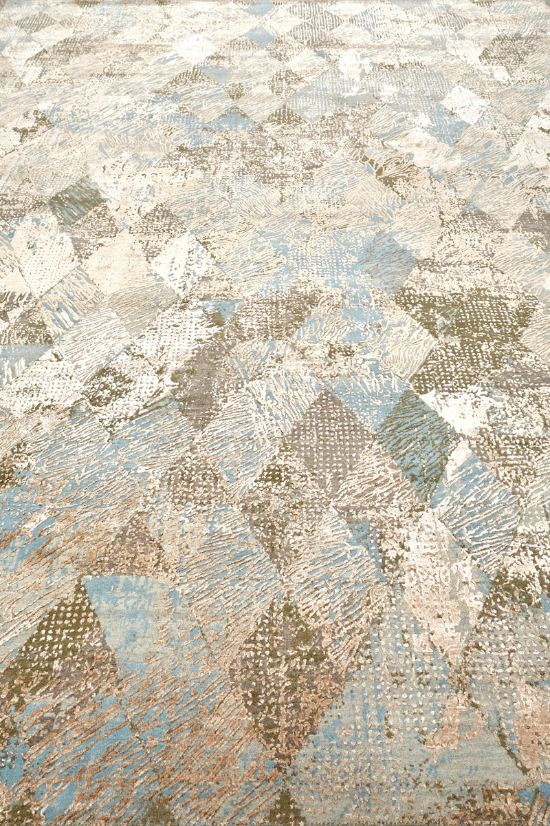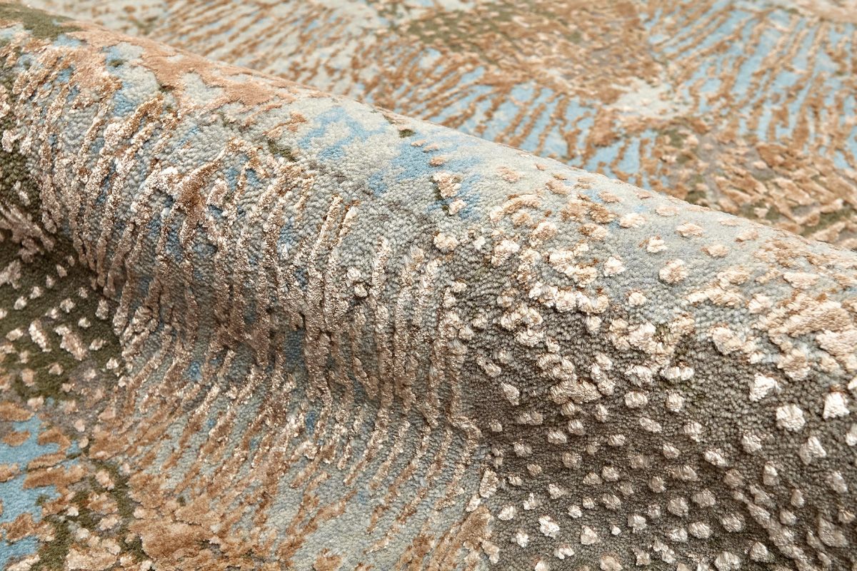 Дизайн ковров напоминает современные полотна художников-абстракционистов и производит столь же яркое и незабываемое впечатление в интерьере. Живописный эффект и необычная фактура зависят от выбора материала: натуральной шерсти, шёлка и от их сочетаний друг с другом. Ковры ткутся вручную в лучших мастерских Индии и Пакистана.