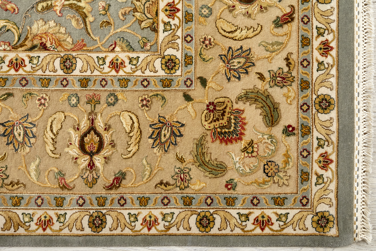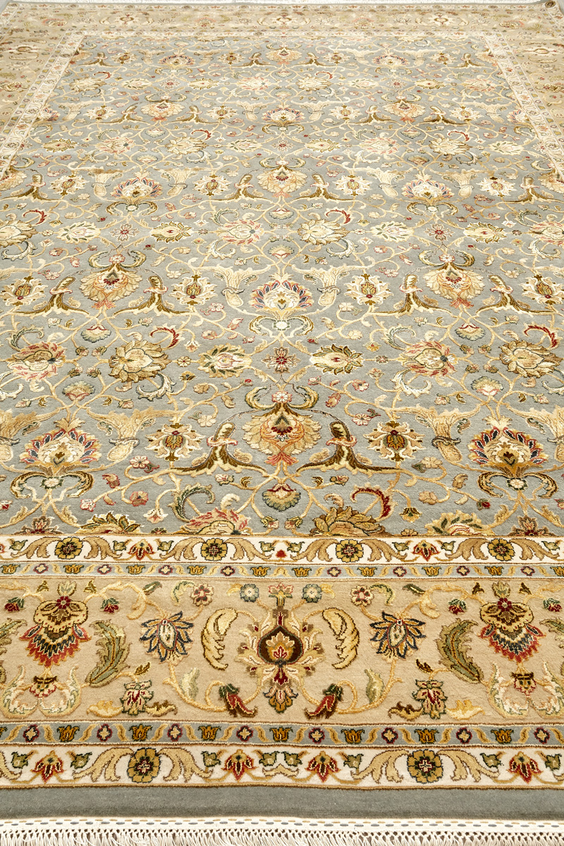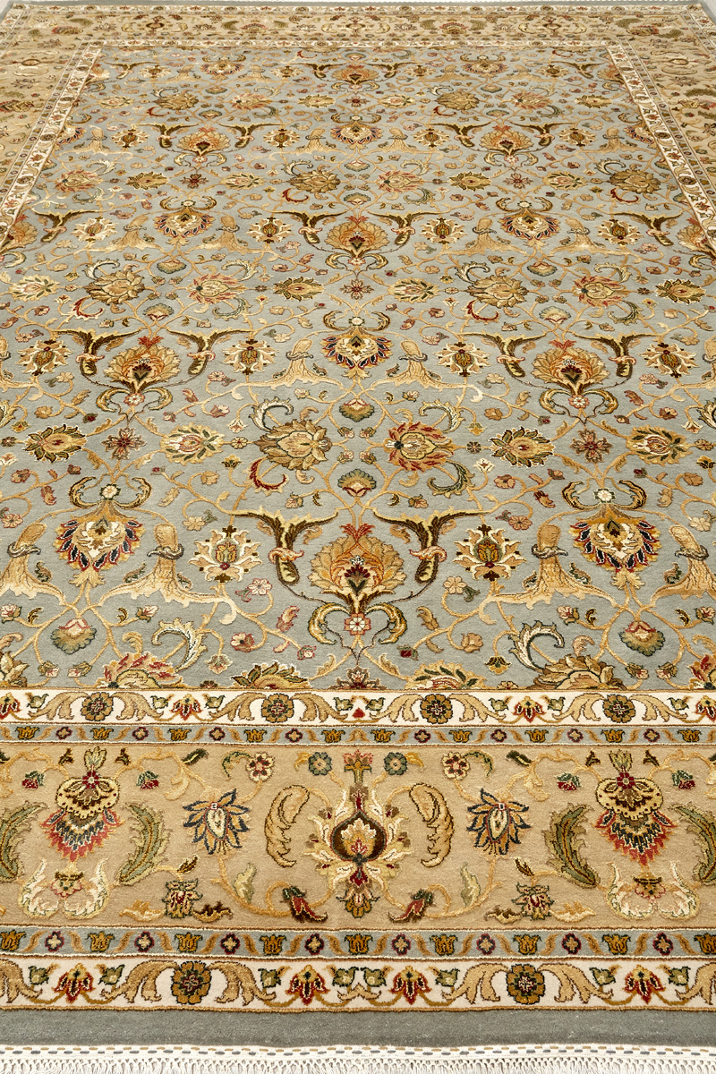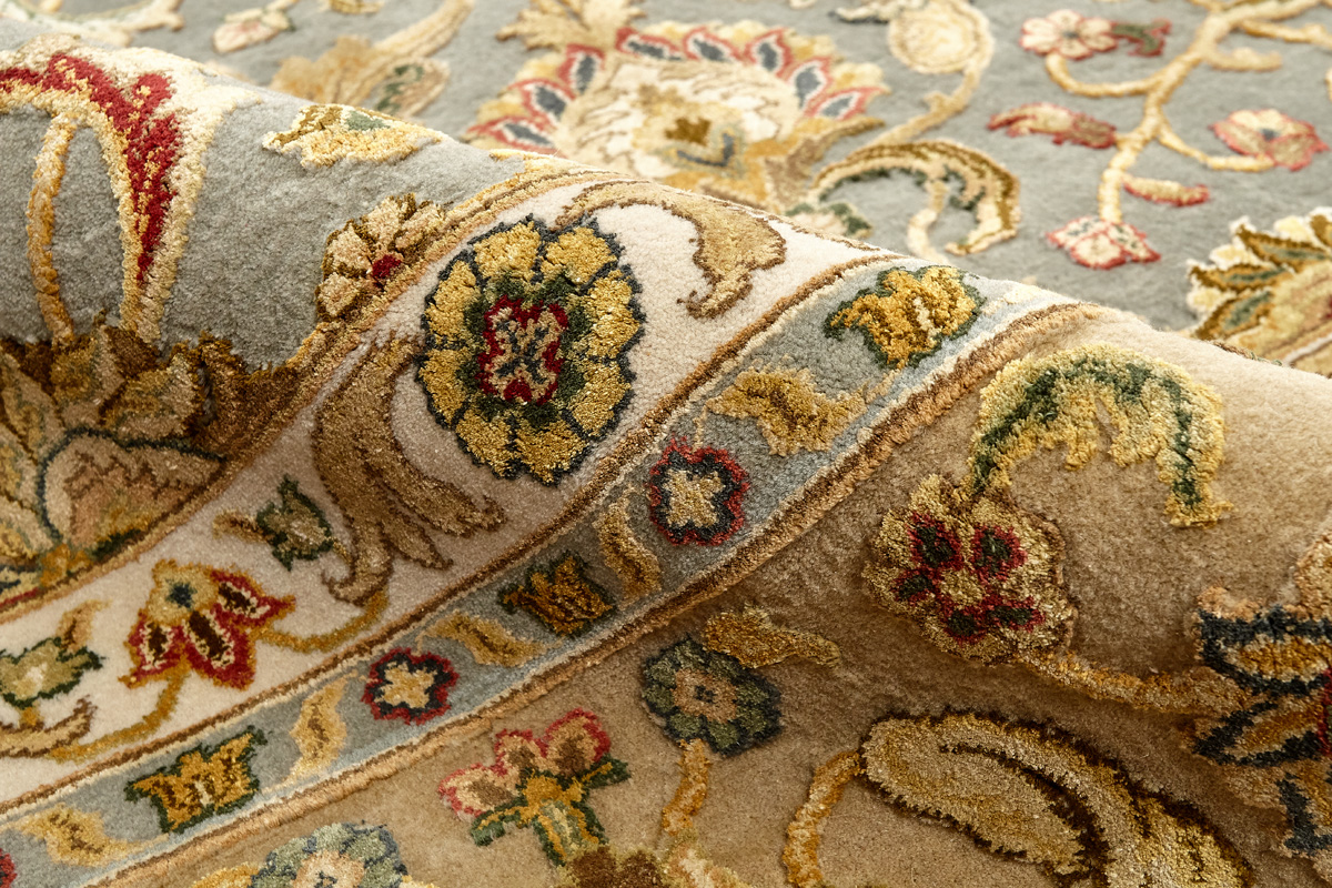 Более пяти веков назад в городе Агра зародилась знаменитая индийская школа ковроткачества, прославившаяся не меньше, чем расположенный здесь же Тадж-Махал. Мощное персидское влияние, помноженное на местный колорит, привело к появлению оригинальных орнаментов с богатыми растительными узорами — причудливым цветам, ветвям и листьям, разбросанным по всему полю ковра.