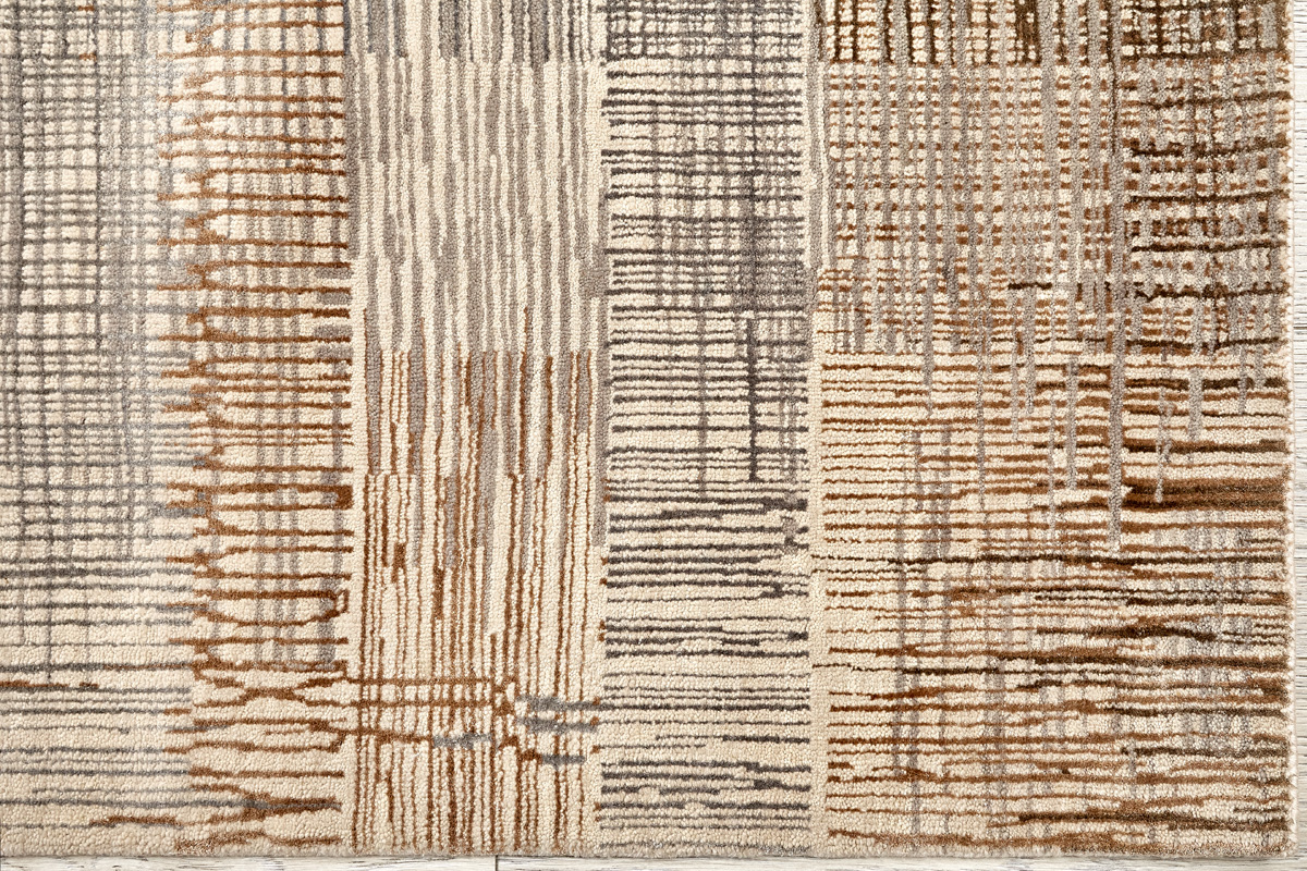 Дизайн ковров напоминает современные полотна художников-абстракционистов и производит столь же яркое и незабываемое впечатление в интерьере. Живописный эффект и необычная фактура зависят от выбора материала: натуральной шерсти, шёлка и от их сочетаний друг с другом. Ковры ткутся вручную в лучших мастерских Индии и Пакистана.