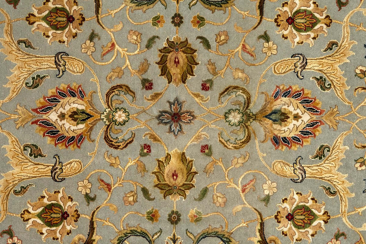 Более пяти веков назад в городе Агра зародилась знаменитая индийская школа ковроткачества, прославившаяся не меньше, чем расположенный здесь же Тадж-Махал. Мощное персидское влияние, помноженное на местный колорит, привело к появлению оригинальных орнаментов с богатыми растительными узорами — причудливым цветам, ветвям и листьям, разбросанным по всему полю ковра.