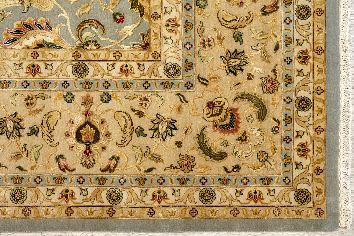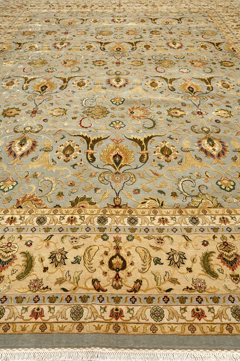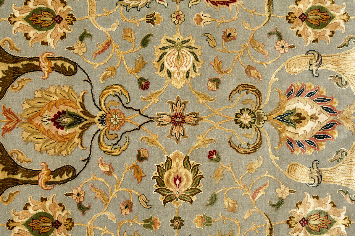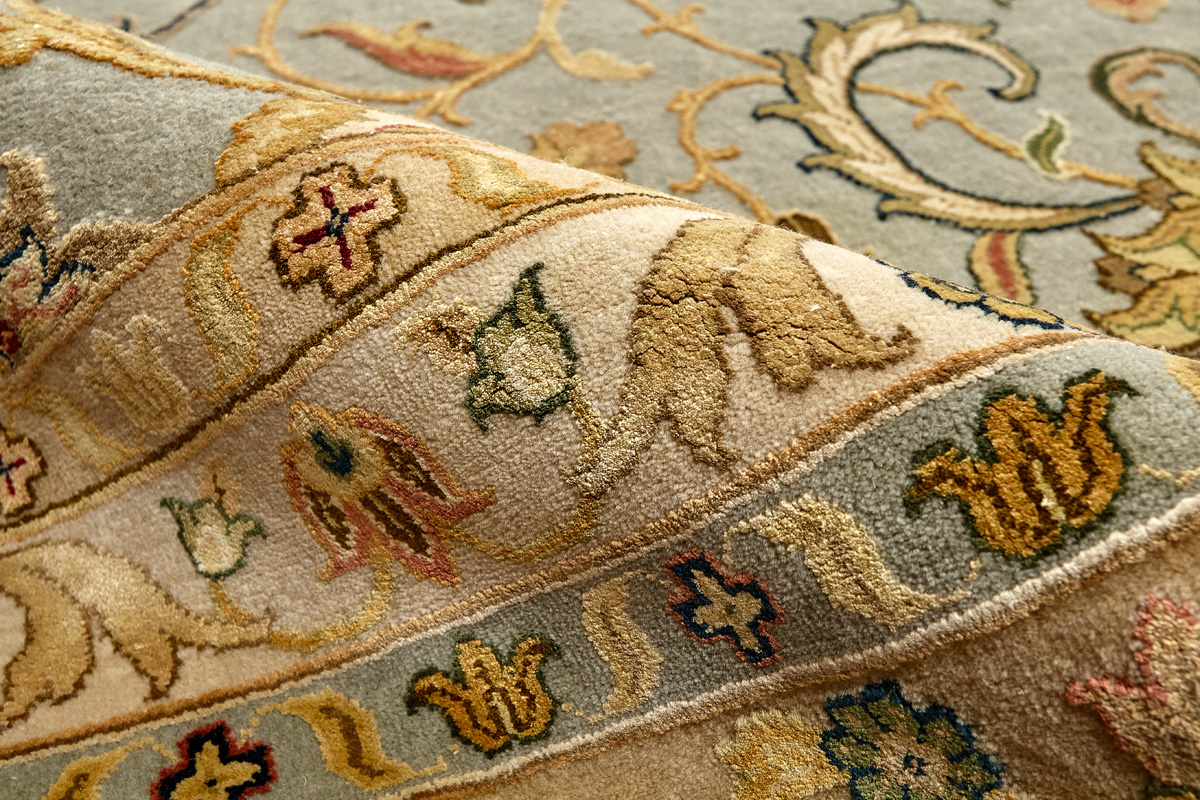 Более пяти веков назад в городе Агра зародилась знаменитая индийская школа ковроткачества, прославившаяся не меньше, чем расположенный здесь же Тадж-Махал. Мощное персидское влияние, помноженное на местный колорит, привело к появлению оригинальных орнаментов с богатыми растительными узорами — причудливым цветам, ветвям и листьям, разбросанным по всему полю ковра.