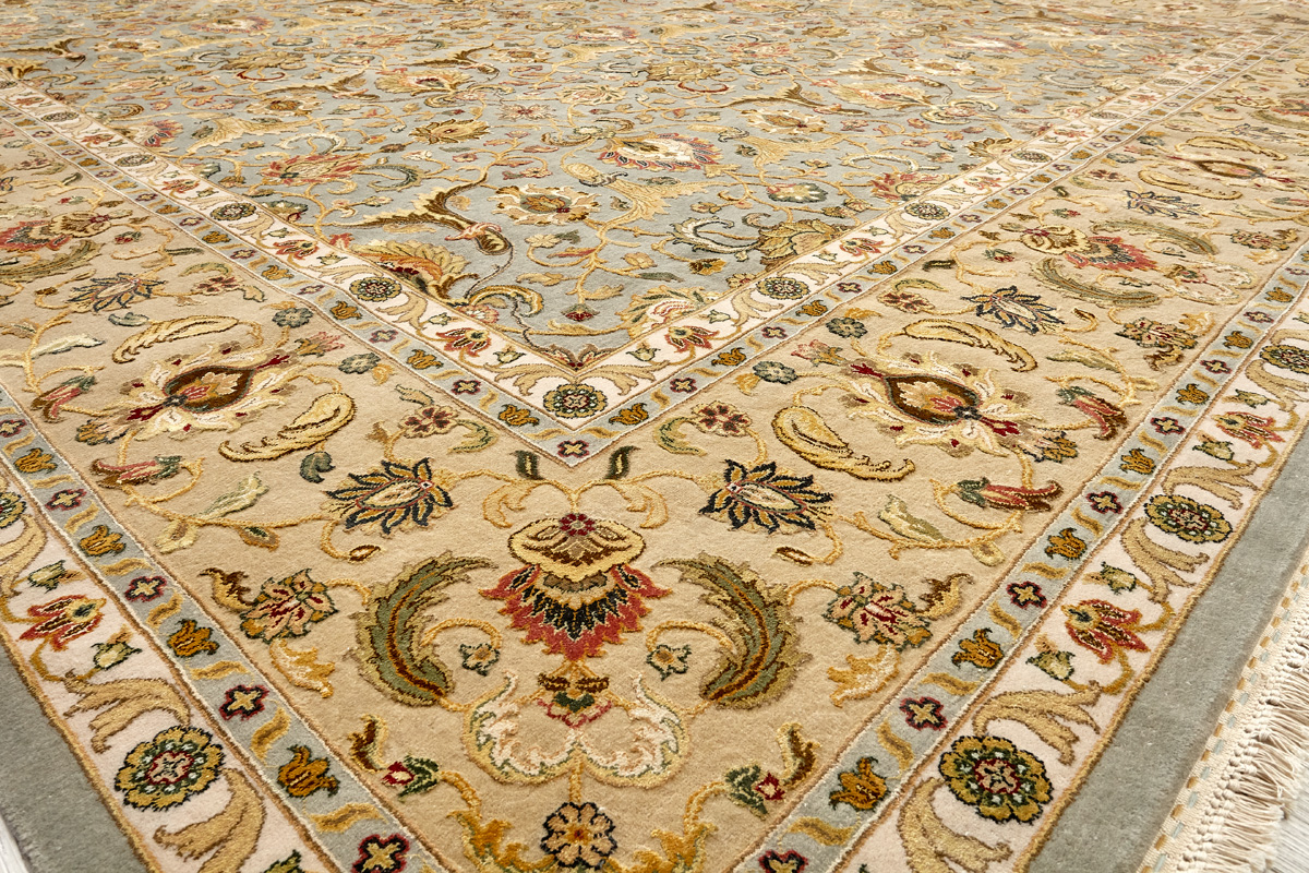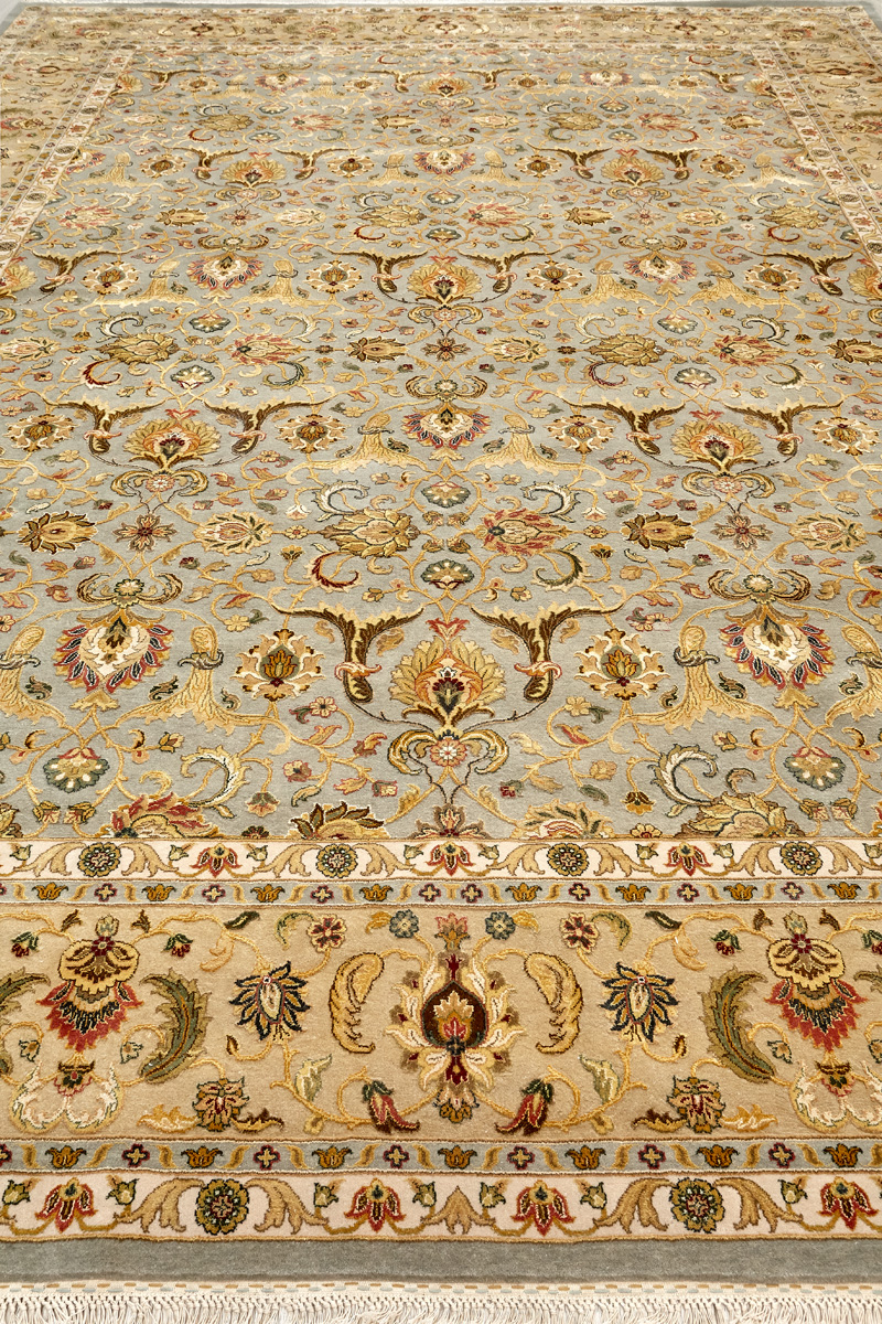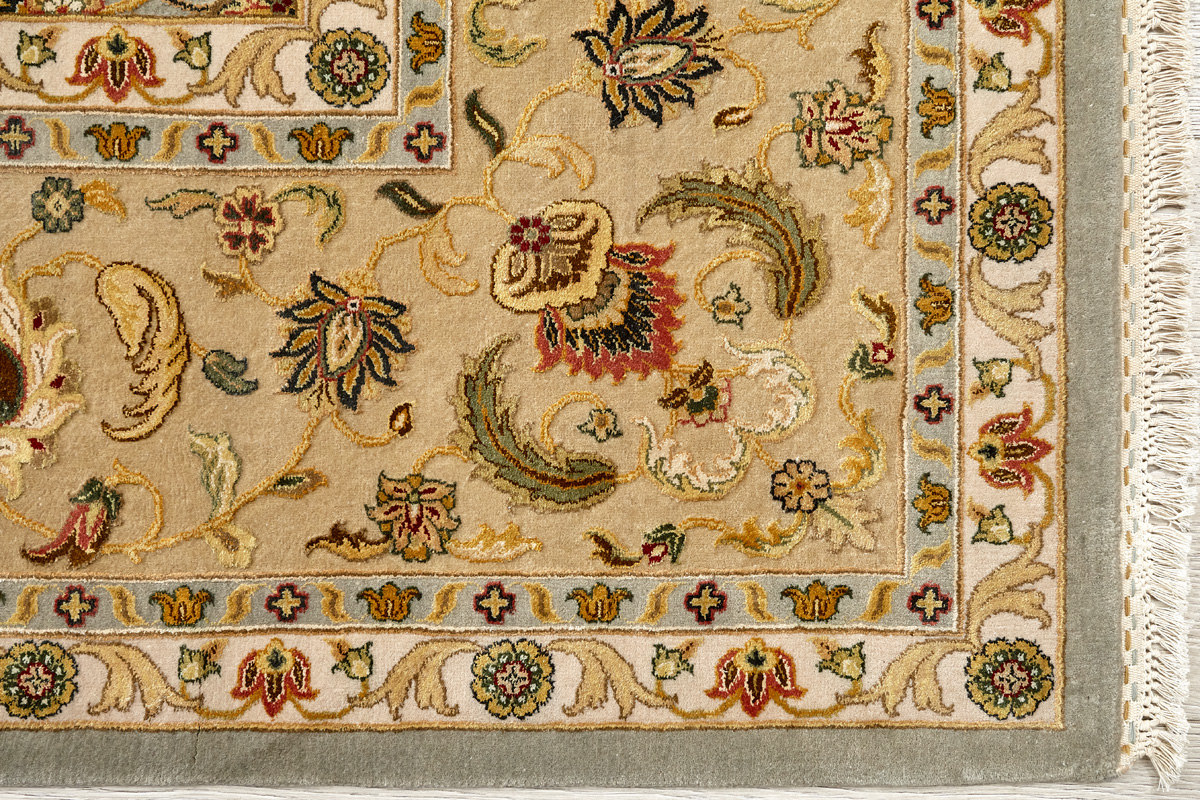 Более пяти веков назад в городе Агра зародилась знаменитая индийская школа ковроткачества, прославившаяся не меньше, чем расположенный здесь же Тадж-Махал. Мощное персидское влияние, помноженное на местный колорит, привело к появлению оригинальных орнаментов с богатыми растительными узорами — причудливым цветам, ветвям и листьям, разбросанным по всему полю ковра.