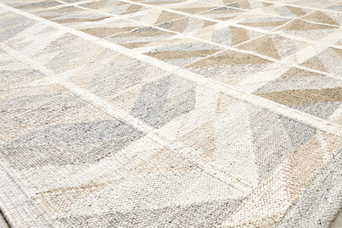 Узор ковров из коллекции Килим создаётся взаимодействием нитей утока и нитей основы, благодаря чему получается геометрический узор.