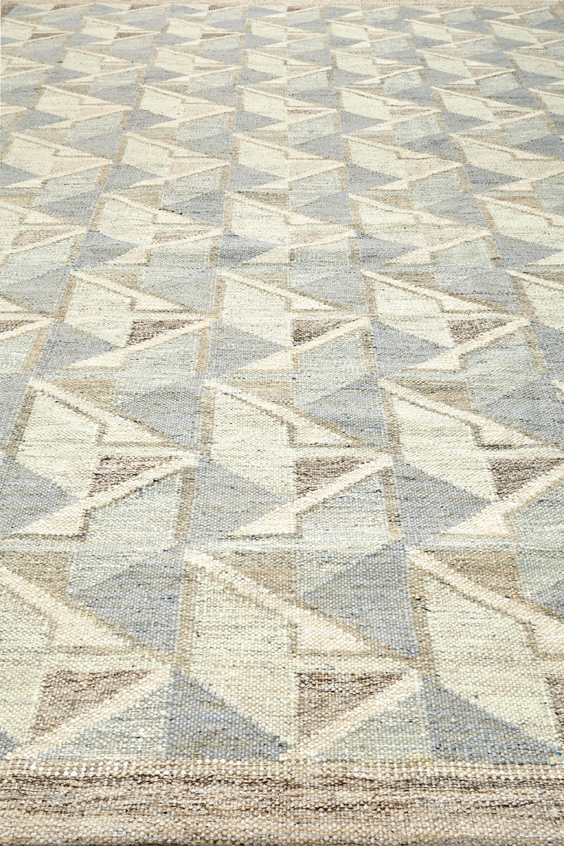 Узор ковров из коллекции Килим создаётся взаимодействием нитей утока и нитей основы, благодаря чему получается геометрический узор.
