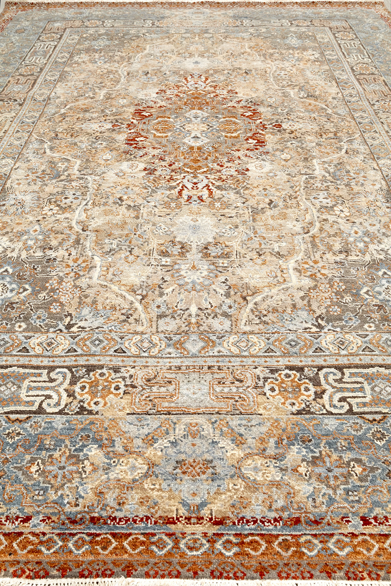 Родина этих ковров Индия и Пакистан. Чтобы создать такое произведение искусства у мастеров уходит от одного года до двух лет. Плотность ковров, в зависимости от размера, составляет от 150 000 до 400 000 узлов на квадратный метр.