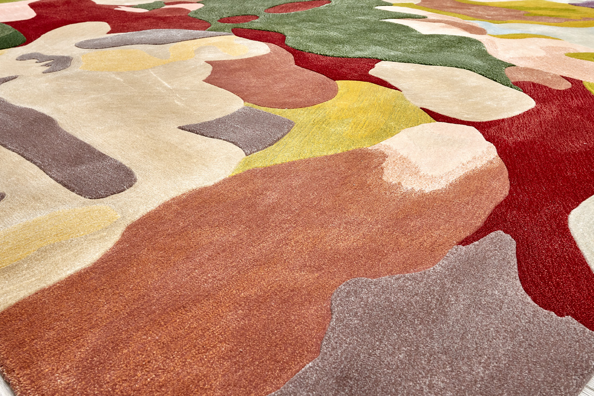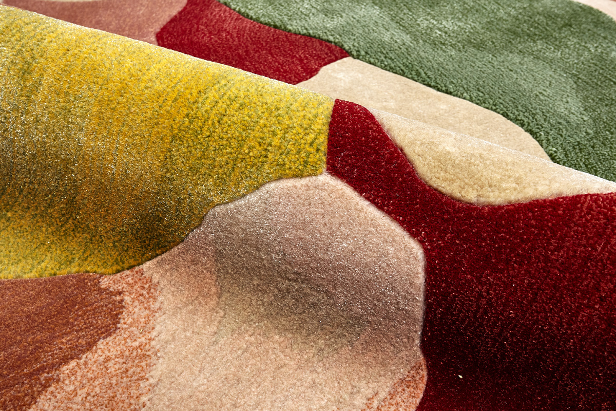 Дизайн ковров напоминает современные полотна художников-абстракционистов и производит столь же яркое и незабываемое впечатление в интерьере. Живописный эффект и необычная фактура зависят от выбора материала: натуральной шерсти, шёлка и от их сочетаний друг с другом. Ковры ткутся вручную в лучших мастерских Индии и Пакистана.