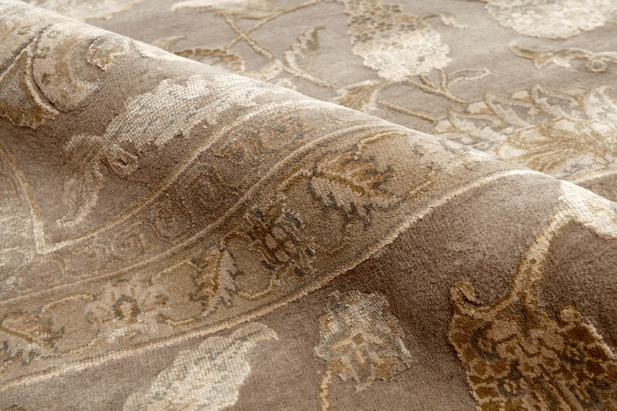 Каждый ковер в этой коллекции соткан вручную из шерсти и арт шёлка опытными индийскими мастерами.