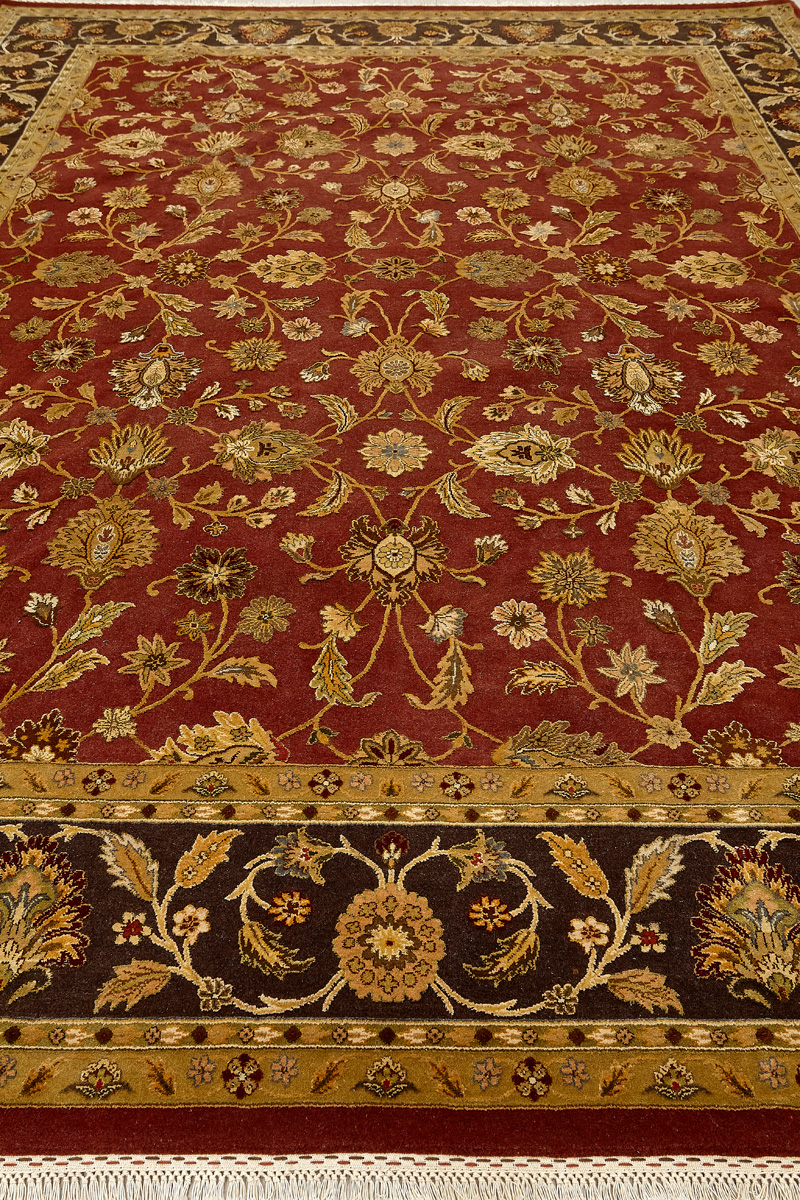 Более пяти веков назад в городе Агра зародилась знаменитая индийская школа ковроткачества, прославившаяся не меньше, чем расположенный здесь же Тадж-Махал. Мощное персидское влияние, помноженное на местный колорит, привело к появлению оригинальных орнаментов с богатыми растительными узорами — причудливым цветам, ветвям и листьям, разбросанным по всему полю ковра.