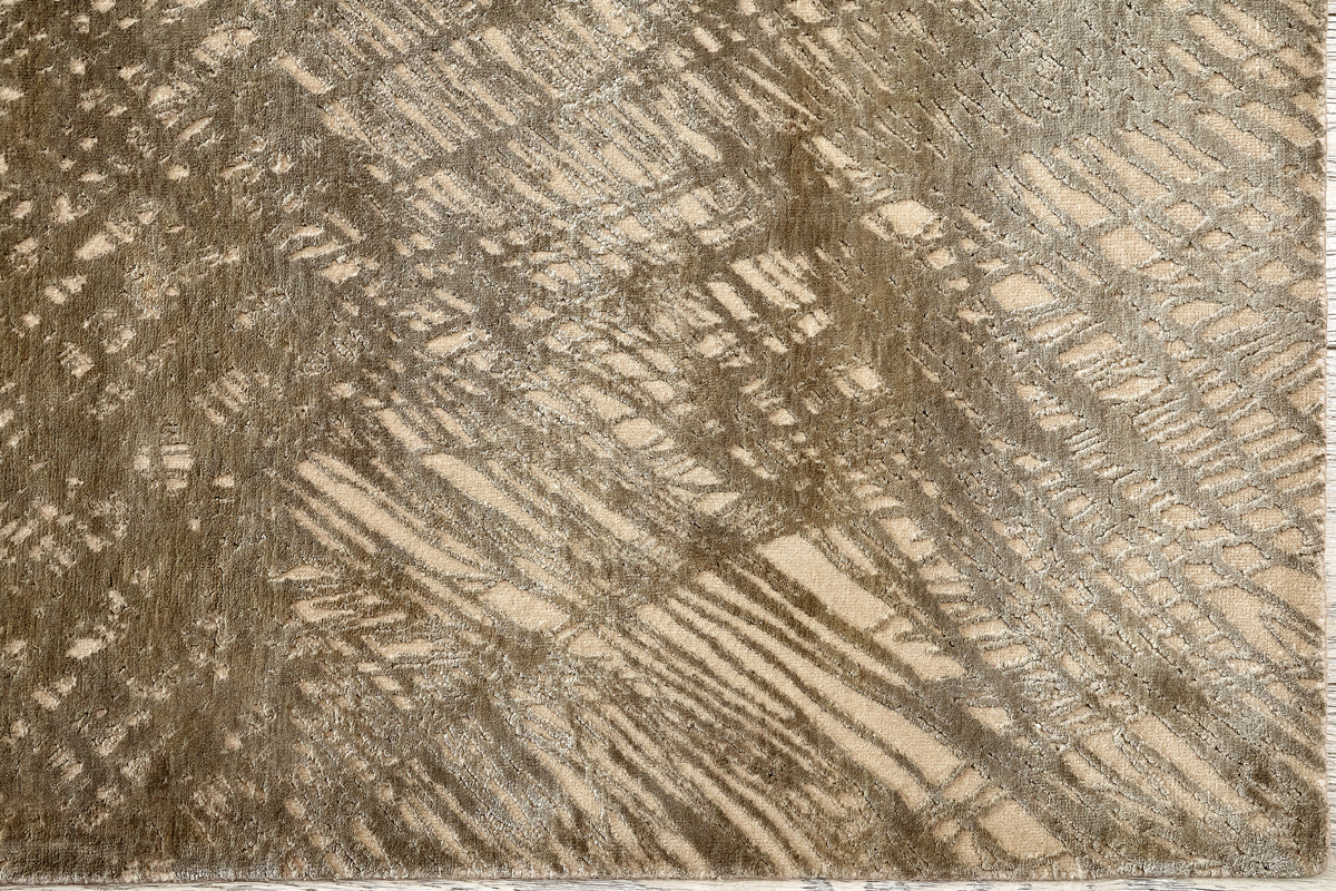 Дизайн ковров напоминает современные полотна художников-абстракционистов и производит столь же яркое и незабываемое впечатление в интерьере. Живописный эффект и необычная фактура зависят от выбора материала: натуральной шерсти, шёлка и от их сочетаний друг с другом. Ковры ткутся вручную в лучших мастерских Индии и Пакистана.