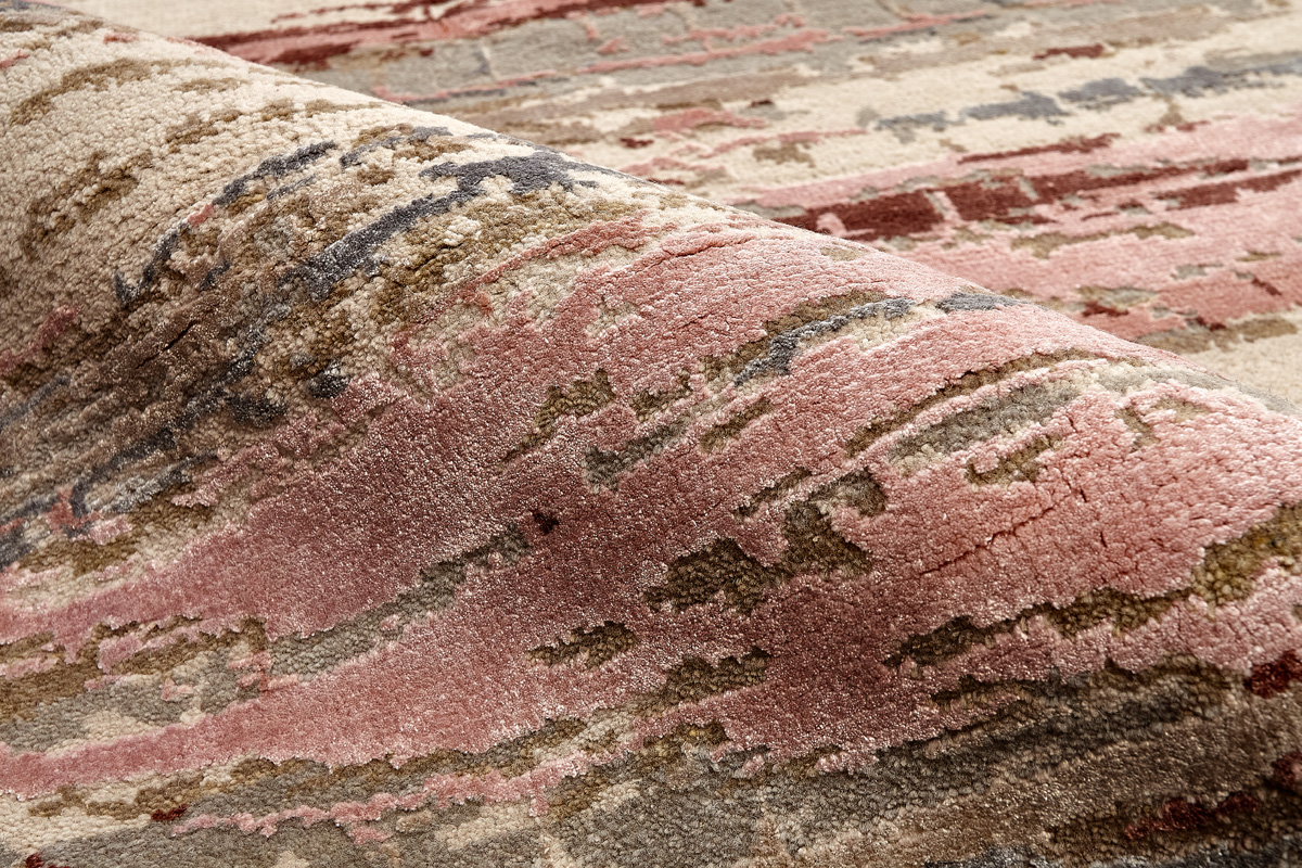 Дизайн ковров напоминает современные полотна художников-абстракционистов и производит столь же яркое и незабываемое впечатление в интерьере. Живописный эффект и необычная фактура зависят от выбора материала: натуральной шерсти, шёлка и от их сочетаний друг с другом. Ковры ткутся вручную в лучших мастерских Индии и Пакистана.