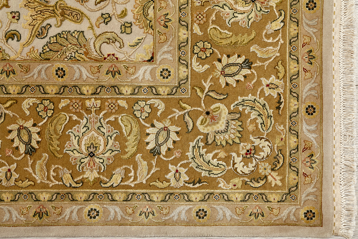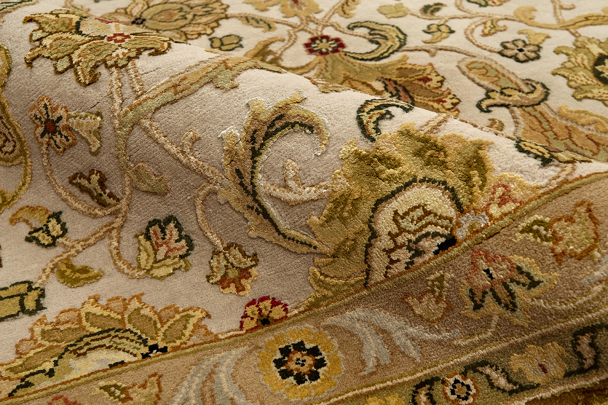 Более пяти веков назад в городе Агра зародилась знаменитая индийская школа ковроткачества, прославившаяся не меньше, чем расположенный здесь же Тадж-Махал. Мощное персидское влияние, помноженное на местный колорит, привело к появлению оригинальных орнаментов с богатыми растительными узорами — причудливым цветам, ветвям и листьям, разбросанным по всему полю ковра.
