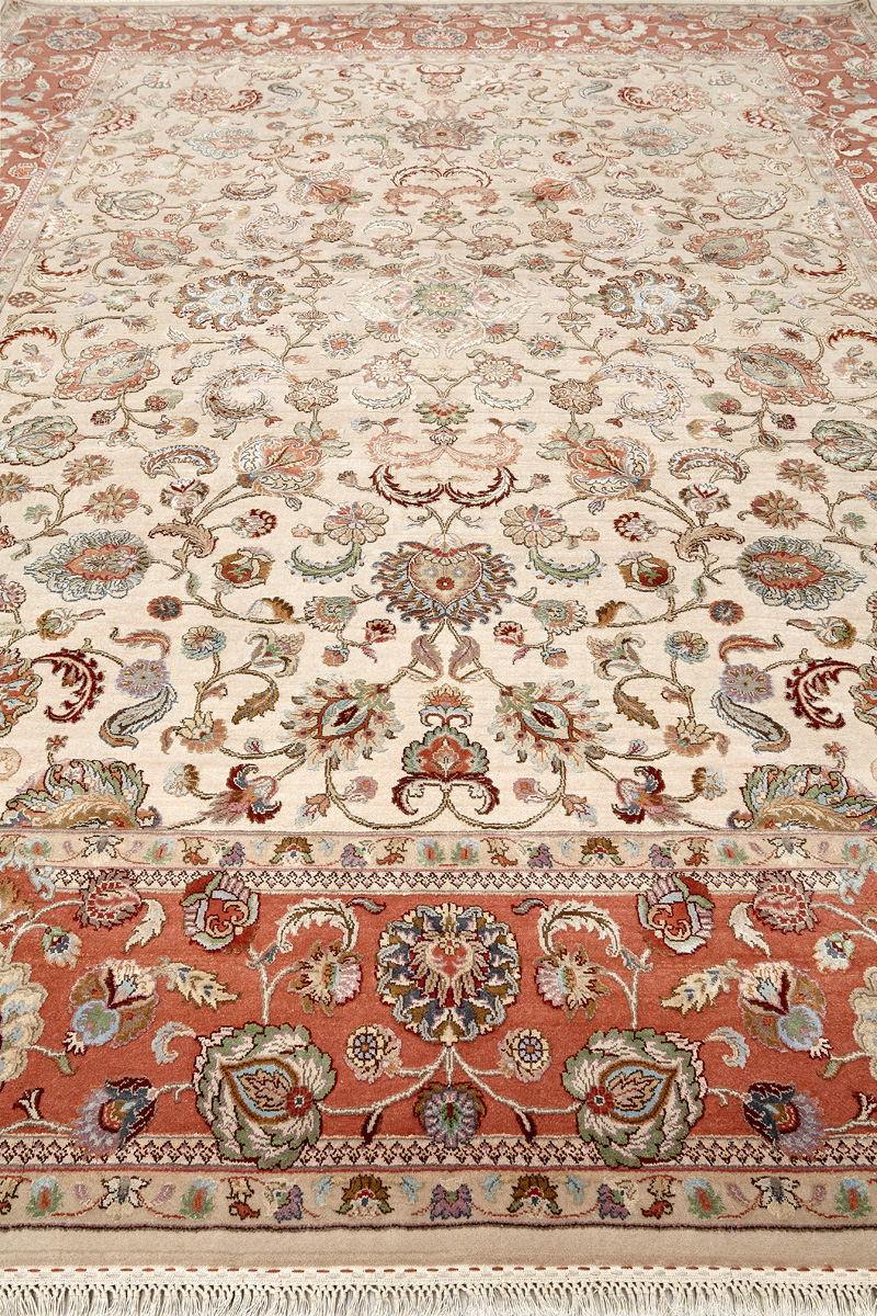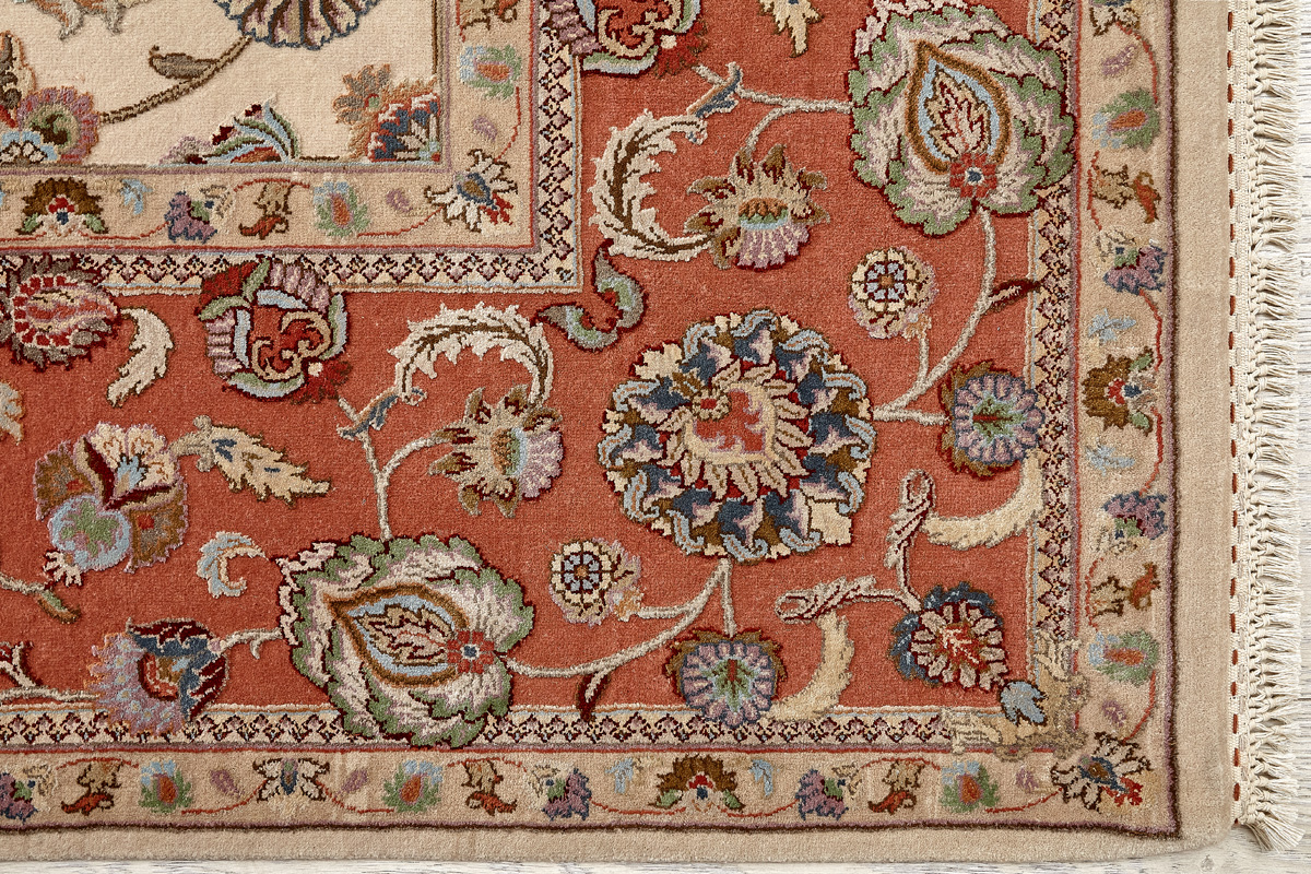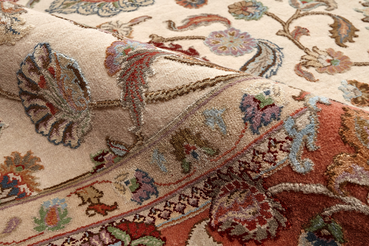 Более пяти веков назад в городе Агра зародилась знаменитая индийская школа ковроткачества, прославившаяся не меньше, чем расположенный здесь же Тадж-Махал. Мощное персидское влияние, помноженное на местный колорит, привело к появлению оригинальных орнаментов с богатыми растительными узорами — причудливым цветам, ветвям и листьям, разбросанным по всему полю ковра.