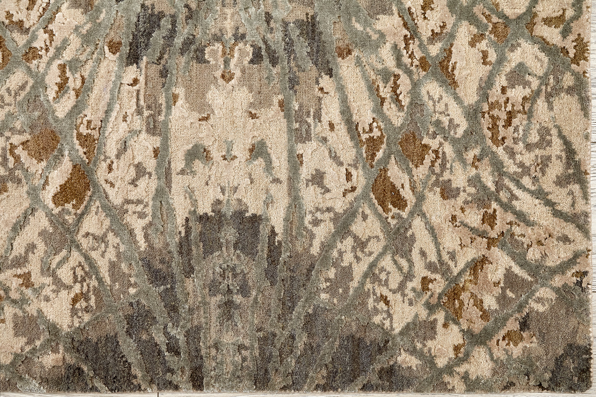 Дизайн ковров напоминает современные полотна художников-абстракционистов и производит столь же яркое и незабываемое впечатление в интерьере. Живописный эффект и необычная фактура зависят от выбора материала: натуральной шерсти, шёлка и от их сочетаний друг с другом. Ковры ткутся вручную в лучших мастерских Индии и Пакистана.