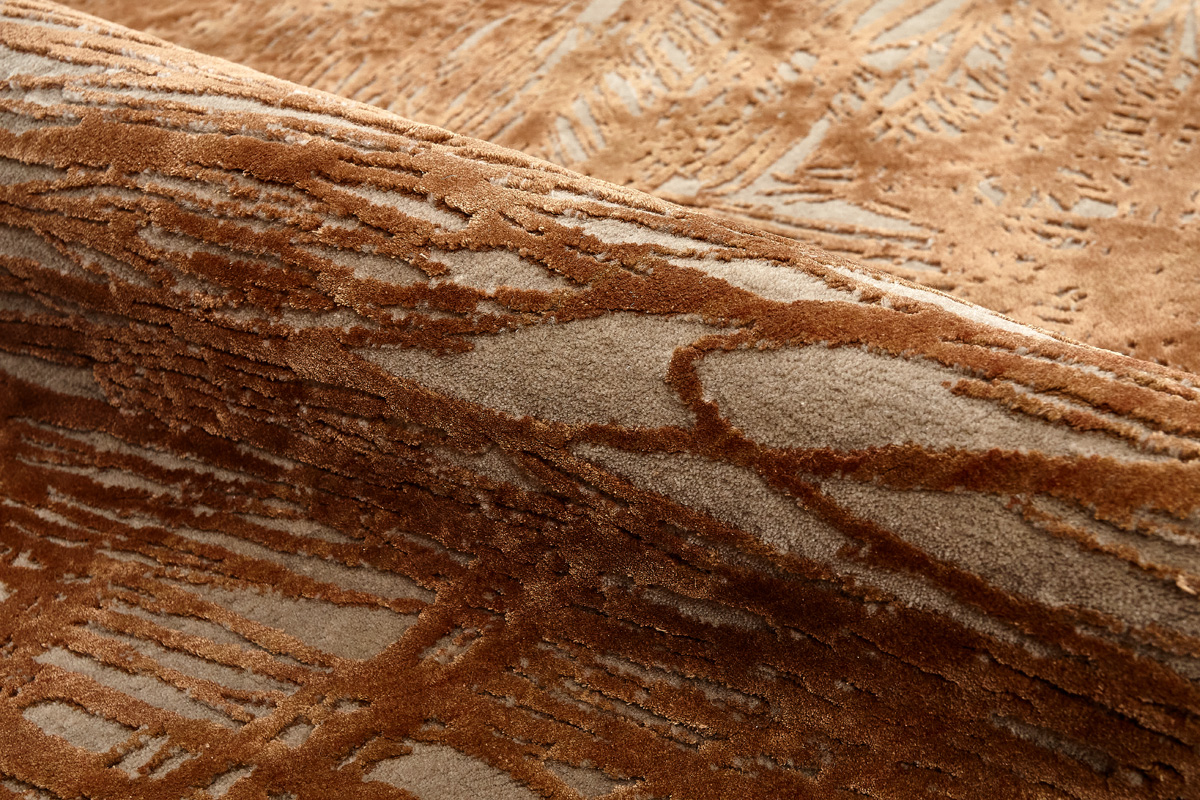 Дизайн ковров напоминает современные полотна художников-абстракционистов и производит столь же яркое и незабываемое впечатление в интерьере. Живописный эффект и необычная фактура зависят от выбора материала: натуральной шерсти, шёлка и от их сочетаний друг с другом. Ковры ткутся вручную в лучших мастерских Индии и Пакистана.