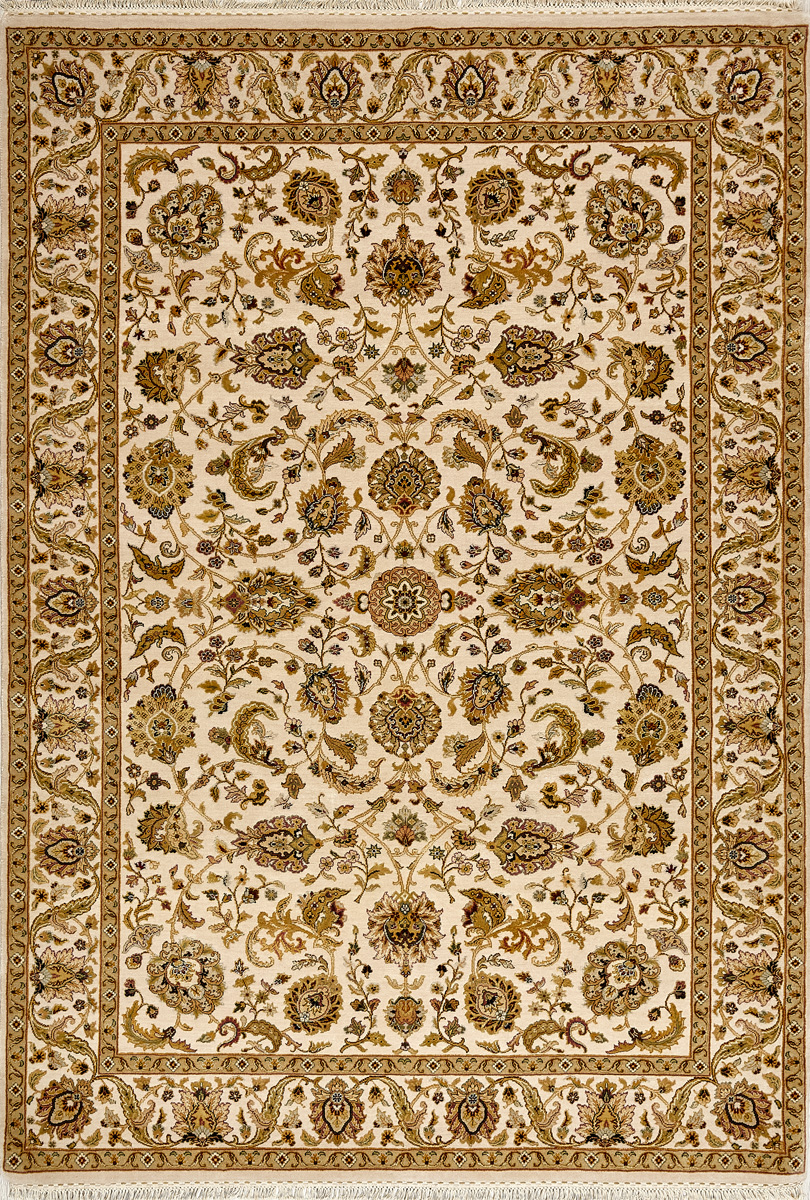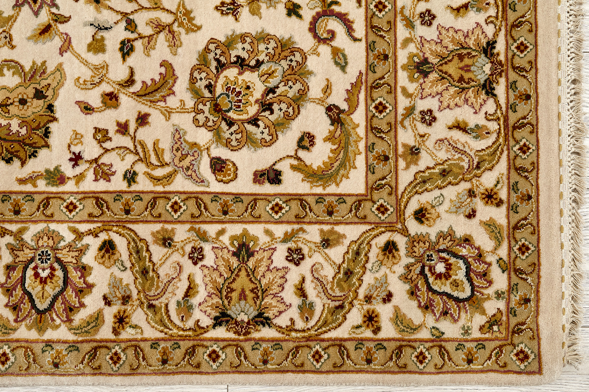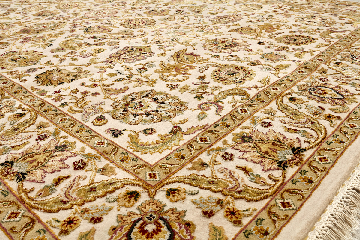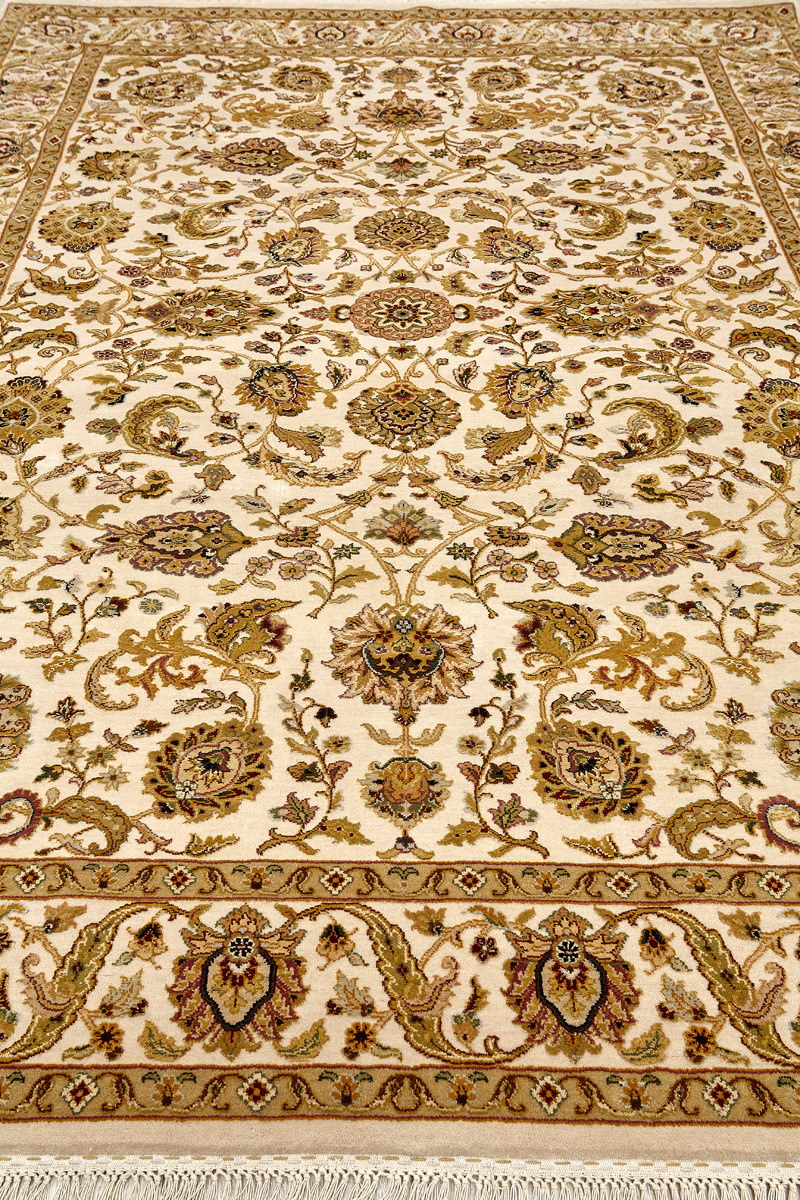Более пяти веков назад в городе Агра зародилась знаменитая индийская школа ковроткачества, прославившаяся не меньше, чем расположенный здесь же Тадж-Махал. Мощное персидское влияние, помноженное на местный колорит, привело к появлению оригинальных орнаментов с богатыми растительными узорами — причудливым цветам, ветвям и листьям, разбросанным по всему полю ковра.