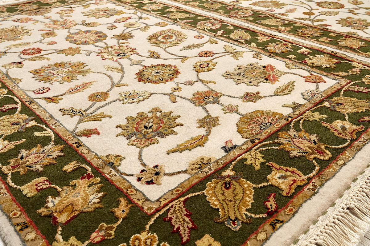 Более пяти веков назад в городе Агра зародилась знаменитая индийская школа ковроткачества, прославившаяся не меньше, чем расположенный здесь же Тадж-Махал. Мощное персидское влияние, помноженное на местный колорит, привело к появлению оригинальных орнаментов с богатыми растительными узорами — причудливым цветам, ветвям и листьям, разбросанным по всему полю ковра.