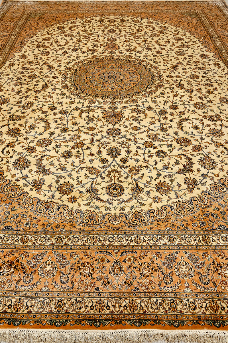 Ковры из коллекции Кашмир ткутся по традиционной технологии из нежнейшего кашмирского шелка. Лучшие произведения индийских мастеров отличает высокая узелковая плотность, прочность и яркость цветов.