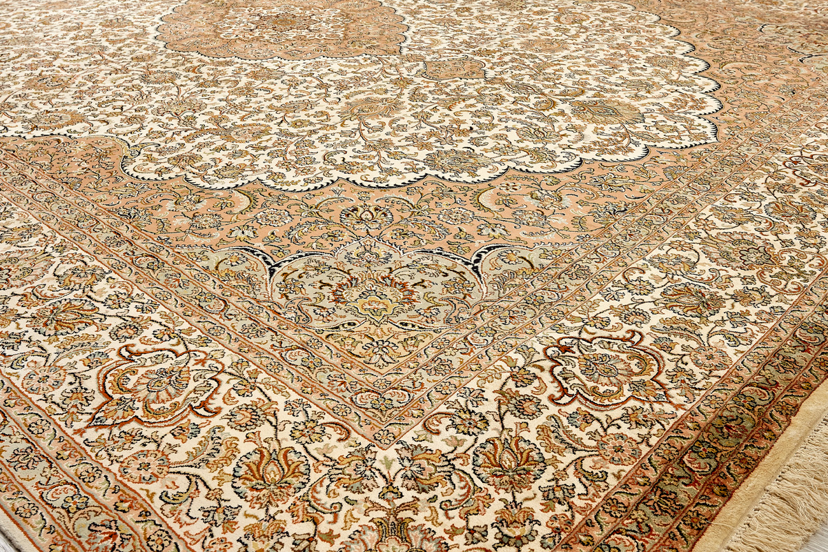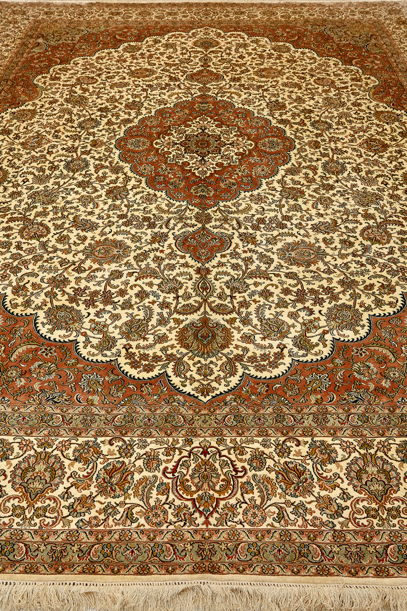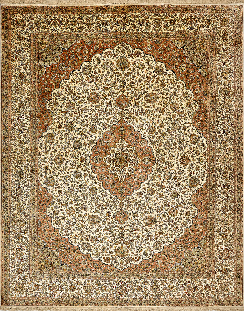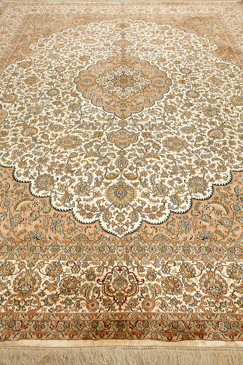 Ковры из коллекции Кашмир ткутся по традиционной технологии из нежнейшего кашмирского шелка. Лучшие произведения индийских мастеров отличает высокая узелковая плотность, прочность и яркость цветов.