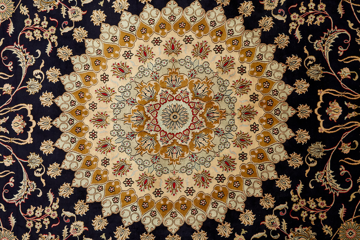 Гармония цвета и изображения придаёт коврам из коллекции Кашмир классическую выразительность, а шёлк в составе — яркие переливы блеска.