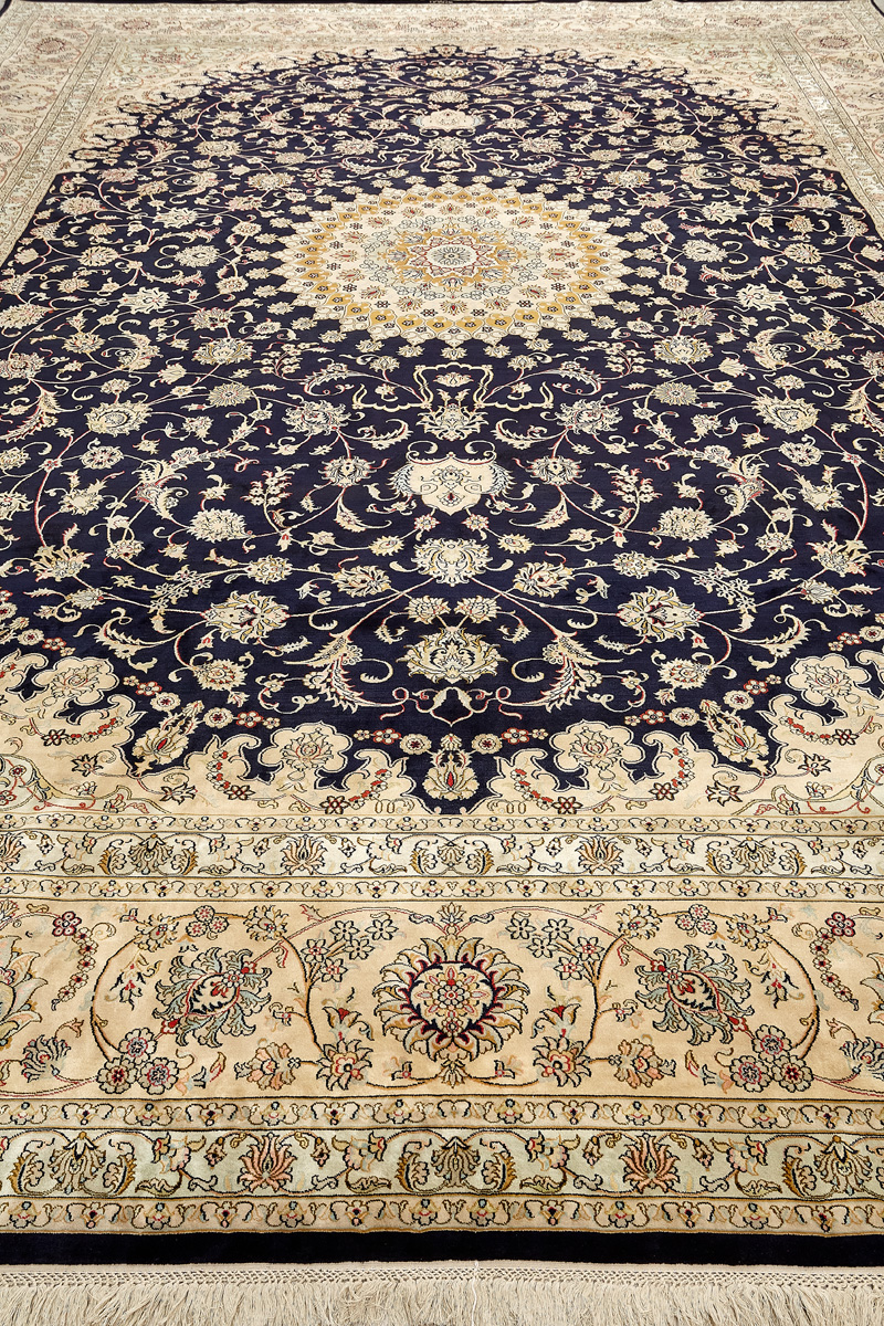 Ковры из коллекции Кашмир ткутся по традиционной технологии из нежнейшего кашмирского шелка. Лучшие произведения индийских мастеров отличает высокая узелковая плотность, прочность и яркость цветов.
