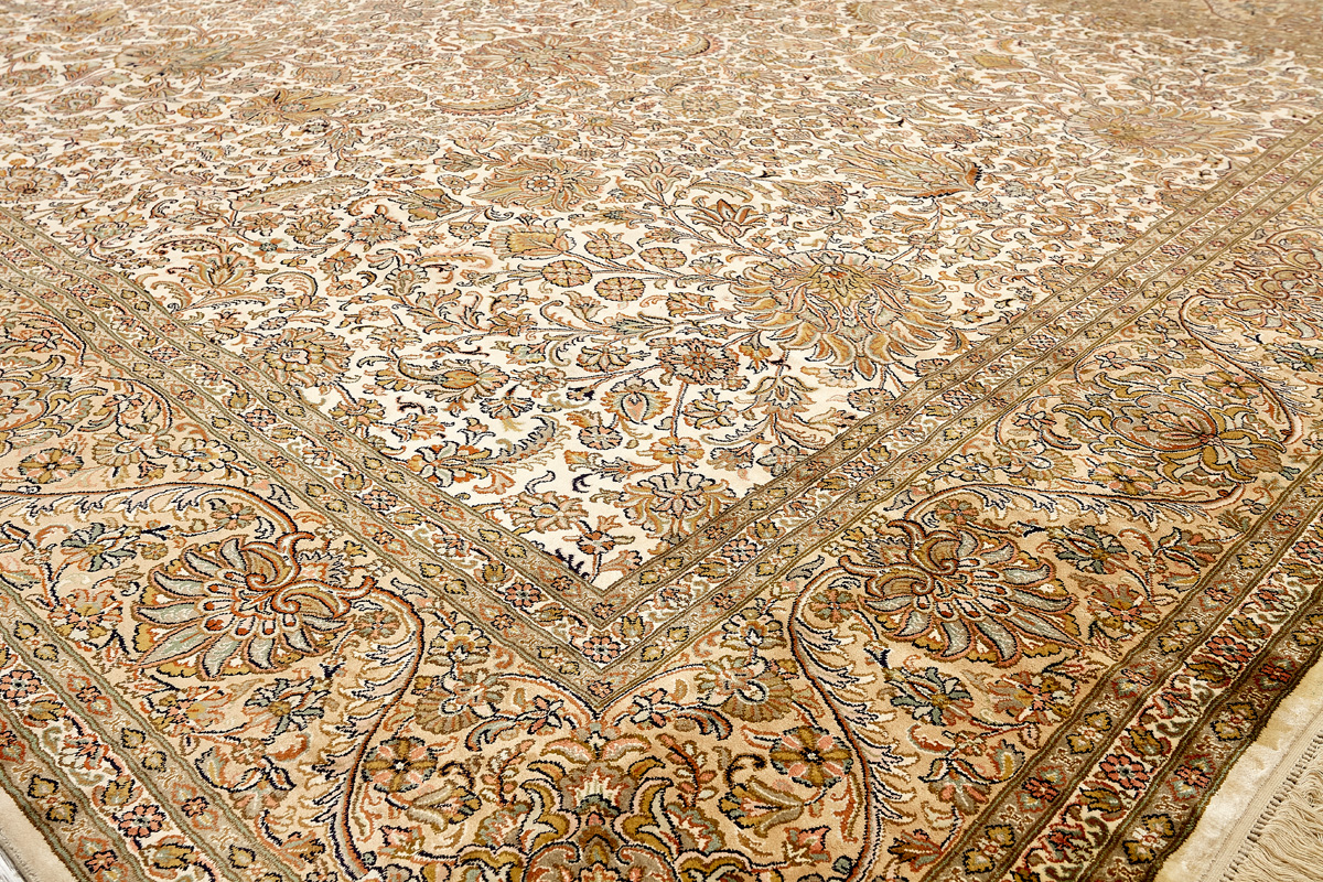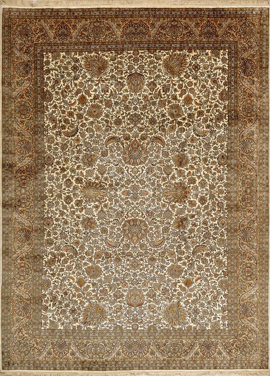 Ковры из коллекции Кашмир ткутся по традиционной технологии из нежнейшего кашмирского шелка. Лучшие произведения индийских мастеров отличает высокая узелковая плотность, прочность и яркость цветов.