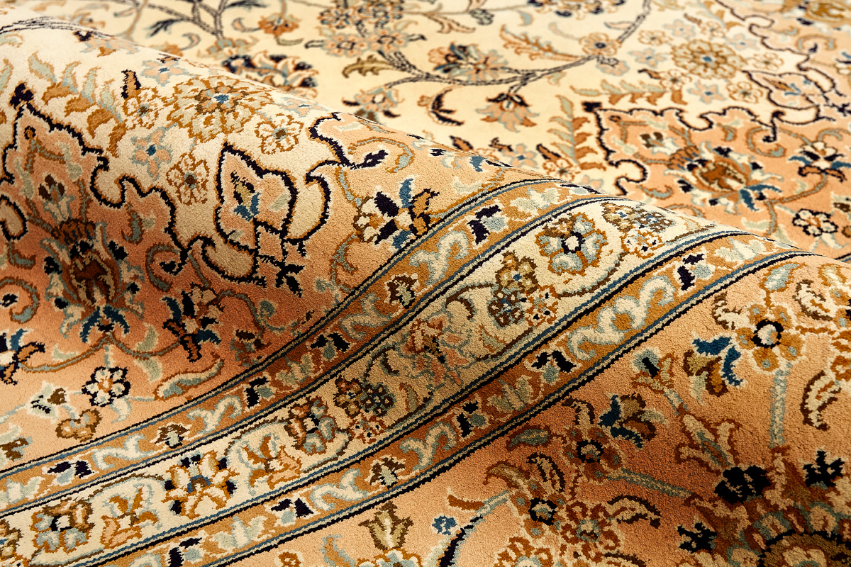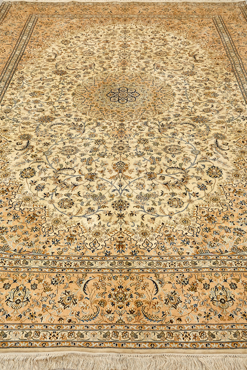 Ковры из коллекции Кашмир ткутся по традиционной технологии из нежнейшего кашмирского шелка. Лучшие произведения индийских мастеров отличает высокая узелковая плотность, прочность и яркость цветов.