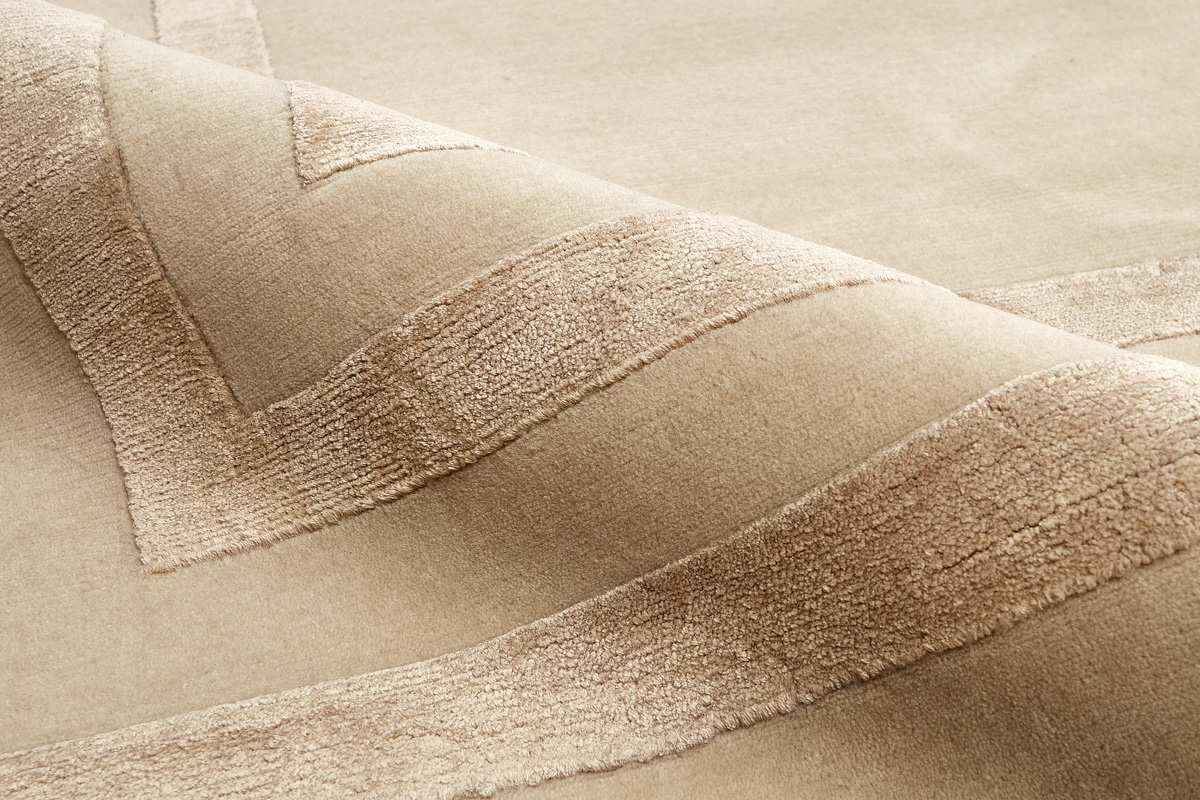 Крупные рисунки в виде линий и фигур на фактурной поверхности ковра превращаются в выразительные композиции. Они акцентируют на себе внимание и добавляют динамики в современный интерьер. Комбинации разных фигур и повторяющийся орнамент задают ритмическую основу пространству, привносят в него оригинальные оптические иллюзии.