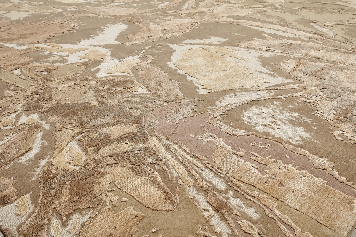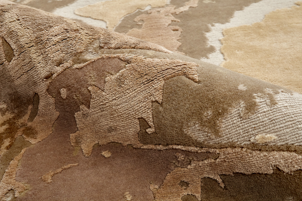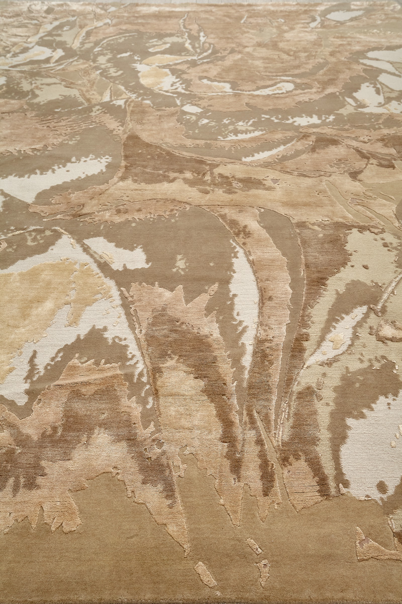 Дизайн ковров напоминает современные полотна художников-абстракционистов и производит столь же яркое и незабываемое впечатление в интерьере. Живописный эффект и необычная фактура зависят от выбора материала: натуральной шерсти, шёлка и от их сочетаний друг с другом. Ковры ткутся вручную в лучших мастерских Индии и Пакистана.