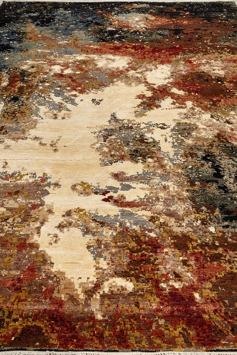 Дизайн ковров напоминает современные полотна художников-абстракционистов и производит столь же яркое и незабываемое впечатление в интерьере. Живописный эффект и необычная фактура зависят от выбора материала: натуральной шерсти, шёлка и от их сочетаний друг с другом. Ковры ткутся вручную в лучших мастерских Индии и Пакистана.