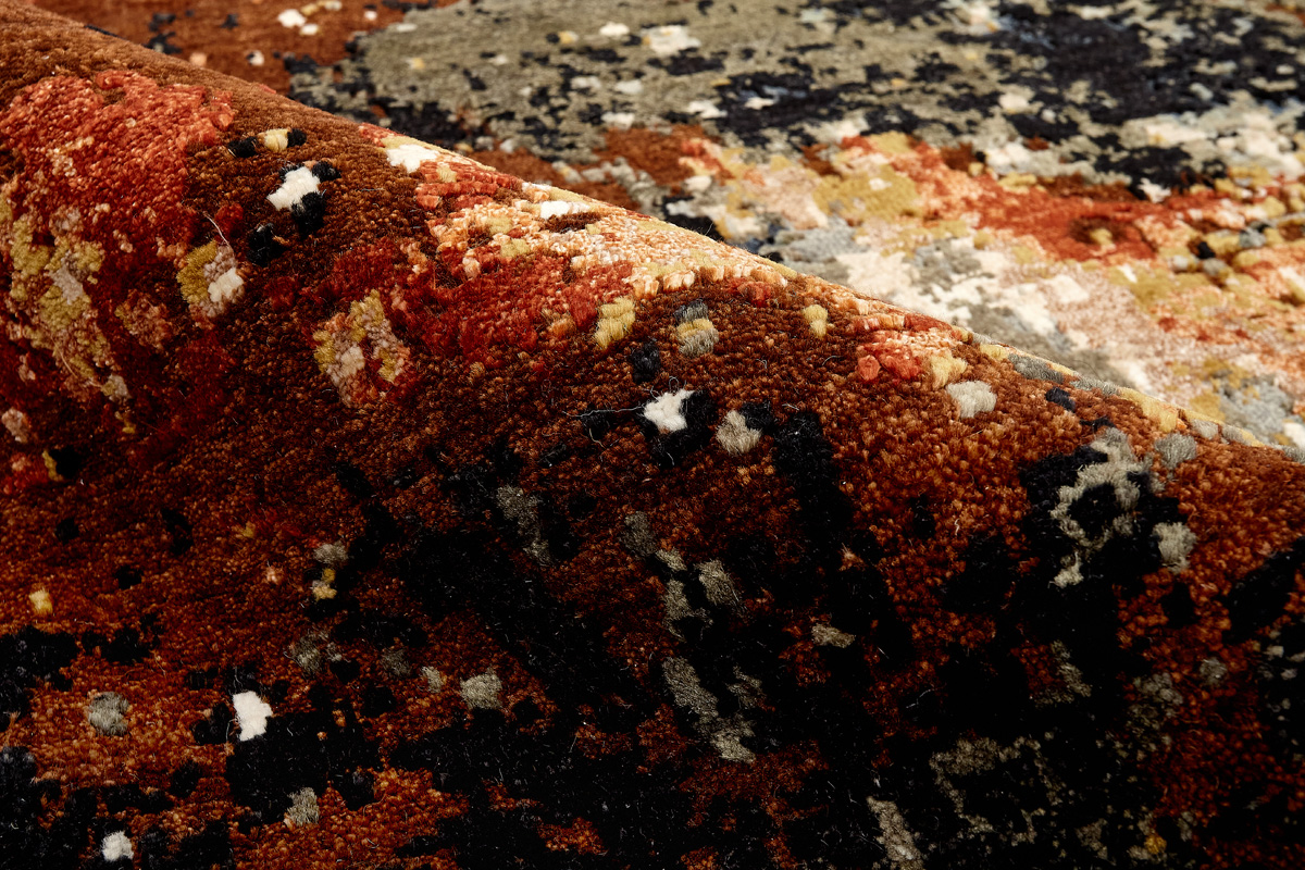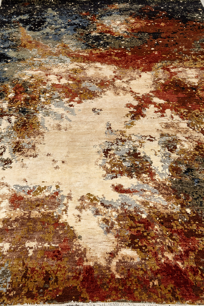 Дизайн ковров напоминает современные полотна художников-абстракционистов и производит столь же яркое и незабываемое впечатление в интерьере. Живописный эффект и необычная фактура зависят от выбора материала: натуральной шерсти, шёлка и от их сочетаний друг с другом. Ковры ткутся вручную в лучших мастерских Индии и Пакистана.
