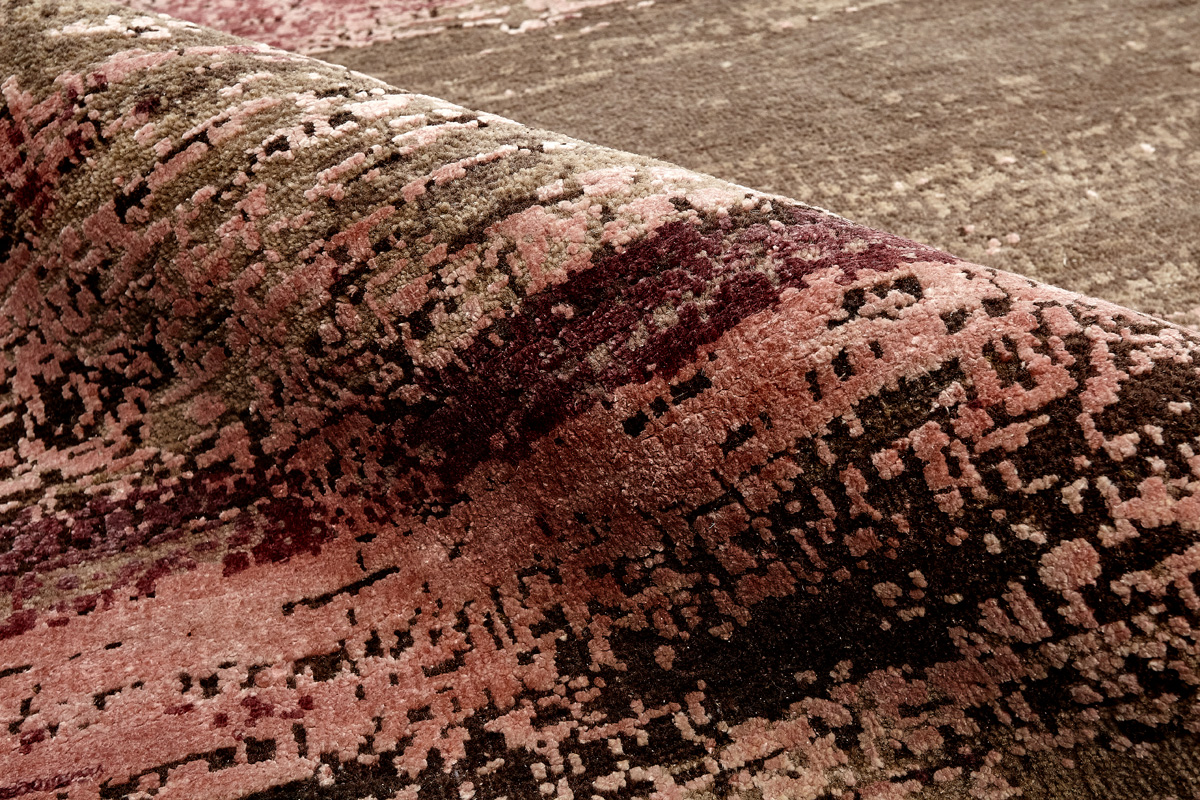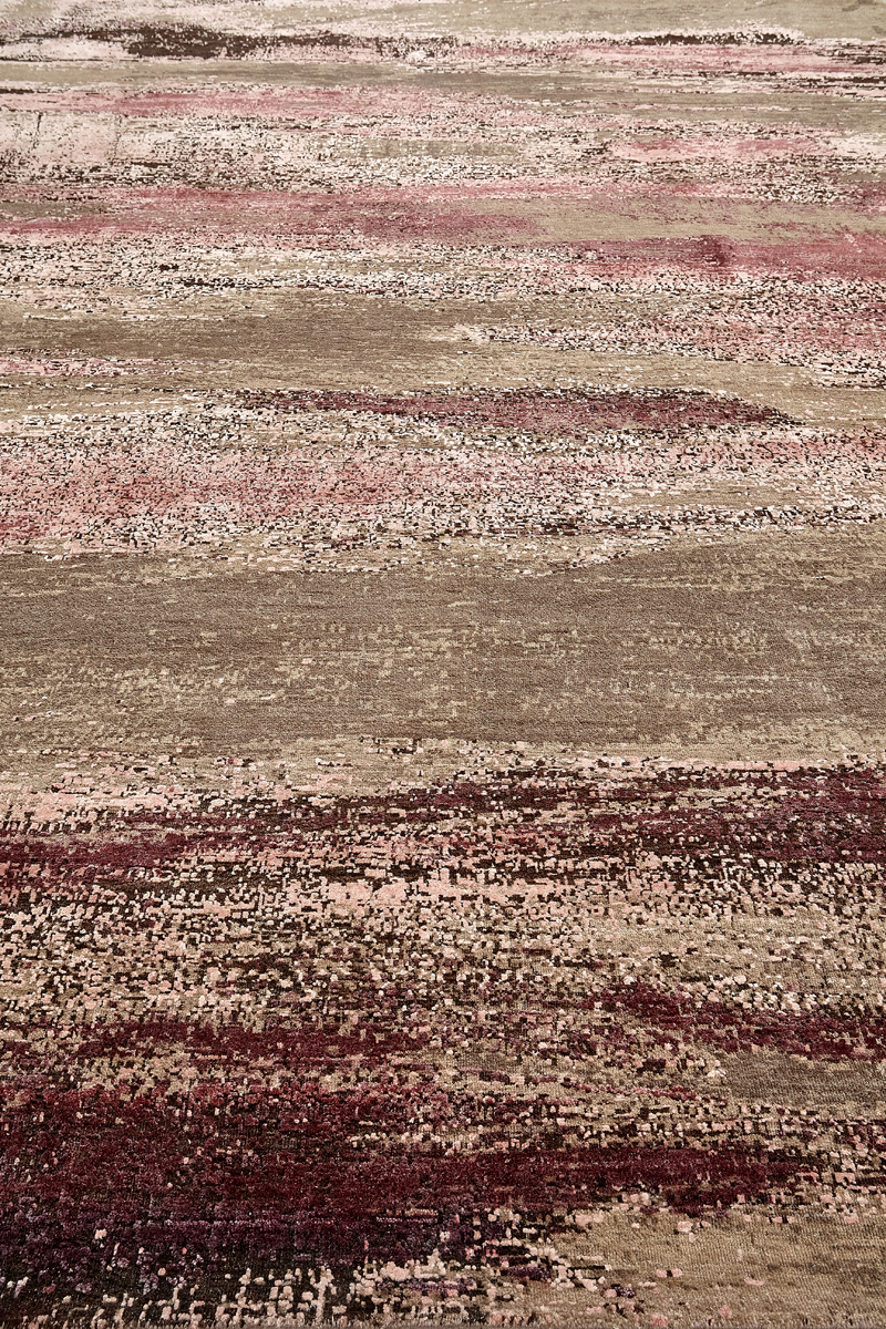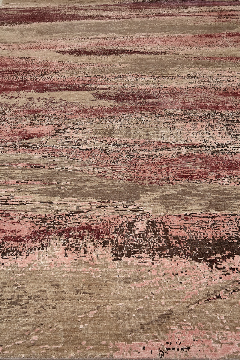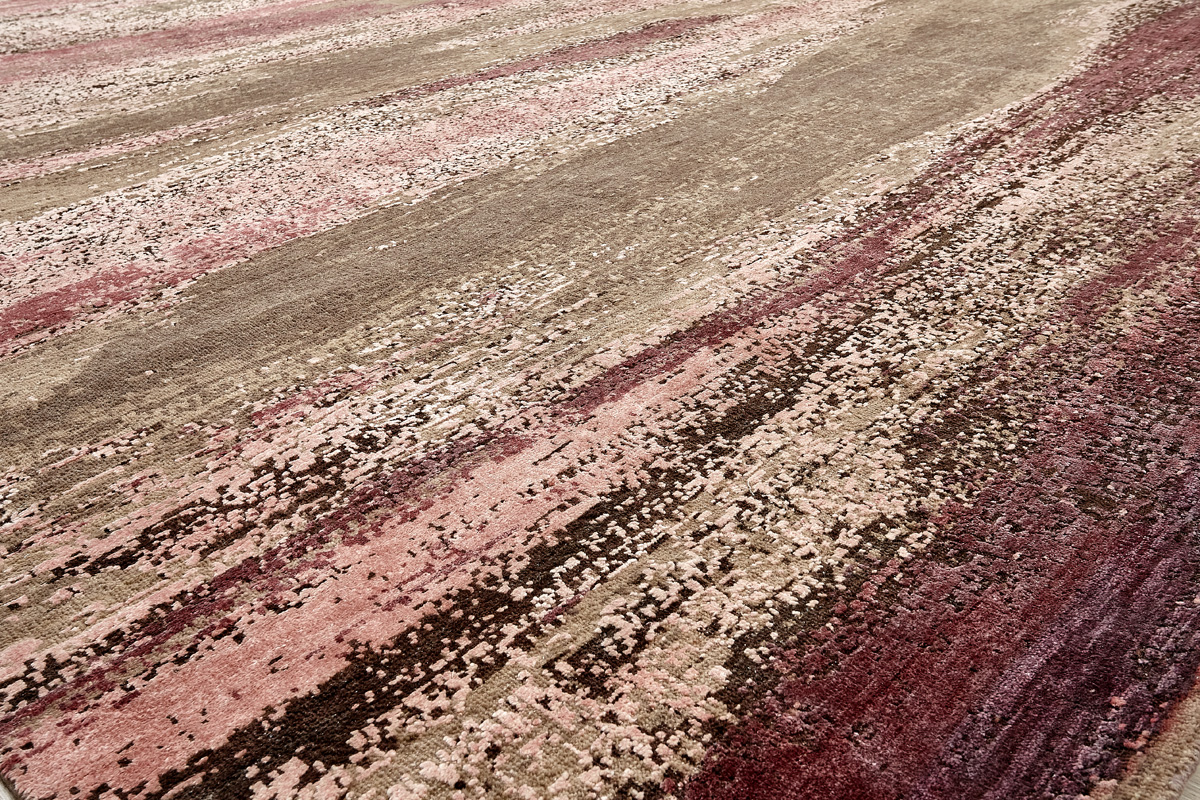 Дизайн ковров напоминает современные полотна художников-абстракционистов и производит столь же яркое и незабываемое впечатление в интерьере. Живописный эффект и необычная фактура зависят от выбора материала: натуральной шерсти, шёлка и от их сочетаний друг с другом. Ковры ткутся вручную в лучших мастерских Индии и Пакистана.