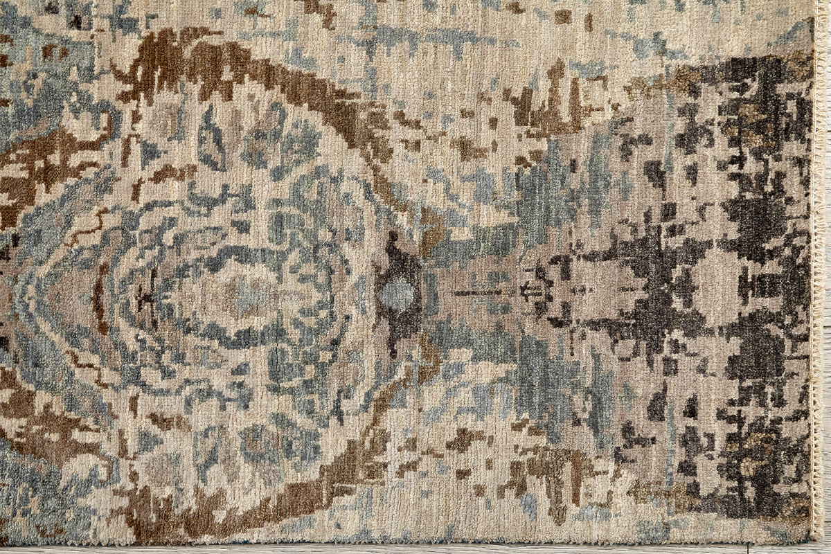 Дизайн ковров напоминает современные полотна художников-абстракционистов и производит столь же яркое и незабываемое впечатление в интерьере. Живописный эффект и необычная фактура зависят от выбора материала: натуральной шерсти, шёлка и от их сочетаний друг с другом. Ковры ткутся вручную в лучших мастерских Индии и Пакистана.