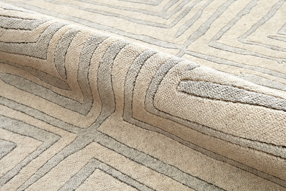Крупные рисунки в виде линий и фигур на фактурной поверхности ковра превращаются в выразительные композиции. Они акцентируют на себе внимание и добавляют динамики в современный интерьер. Комбинации разных фигур и повторяющийся орнамент задают ритмическую основу пространству, привносят в него оригинальные оптические иллюзии.